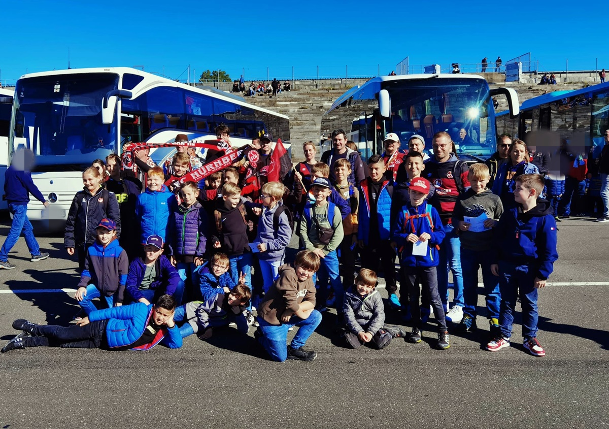 Die Nachfrage der Kids war enorm, da es für viele der erste Stadionbesuch einer Bundesligamannschaft war. Schnell war der Bus ausgebucht, und so machten sich 50 fußballbegeisterte Kinder und einige Erwachsene auf den Weg zum „Club“ nach Nürnberg. Bei bestem Herbstwetter machten die Kids große Augen, als sie das mit fast 30.000 Zuschauern gefüllte, schmucke Max-Morlock-Stadion erblickten. Ausgestattet mit Schals, Fahnen und Trikots feuerten sie die Nürnberger leidenschaftlich an.