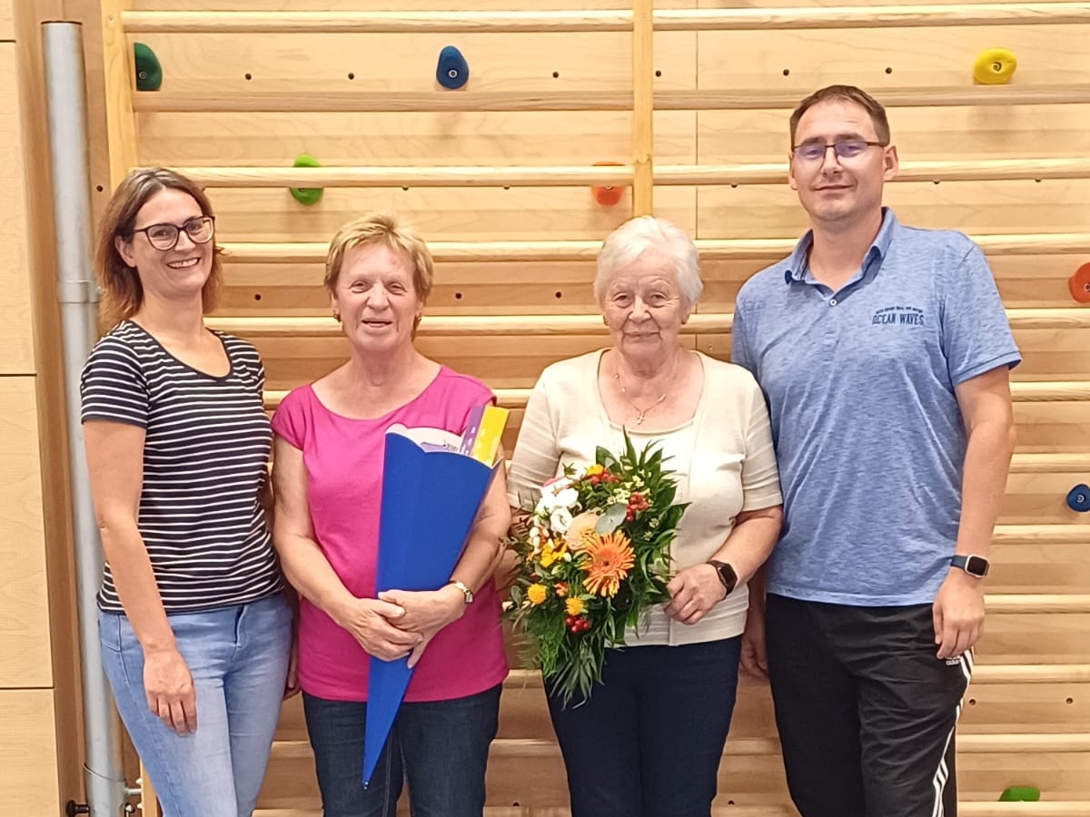 Annemarie Sladky, die bereits 33 Jahre im Kinderturnbereich das „Purzelvolk“ des TSV Flossenbürg ehrenamtlich betreut hat, übernimmt nun den Stab von der scheidenden Dora Birkner in der Funktion der Vorturnerin. Begrüßt und herzlich willkommen geheißen wurde sie von Carmen Memminger mit einer gefüllten Schultüte für ihren Einstieg in die Turnerriege „50plus“.