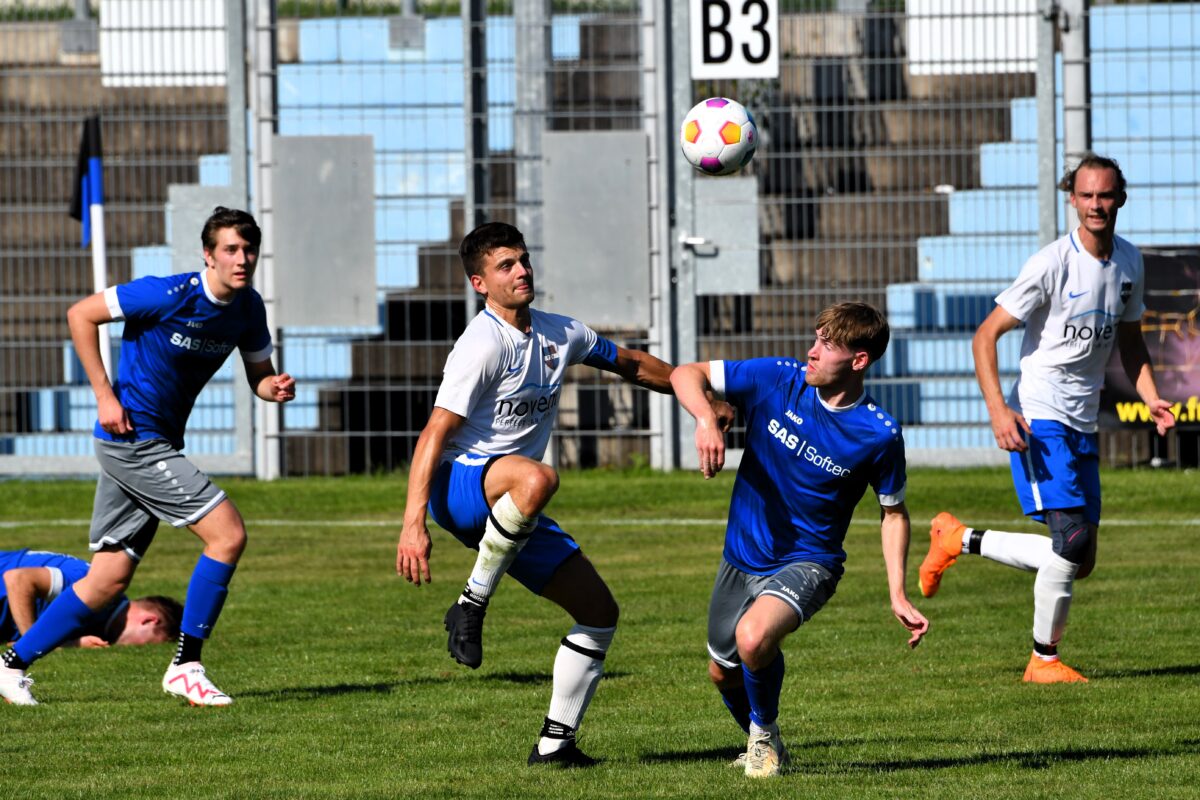 Favoritenrolle gerecht und gewann knapp, aber verdient mit 2:0 gegen den Neuling. Tadeas Sustr erzielte in einem Spiel mit vielen Zweikämpfen kurz vor der Pause die Führung. Danach passierte lange nichts, ehe in der 84. Minute Simon Schönberg mit dem zweiten Treffer die Entscheidung besorgte. Lukas Wiesnet (FC) sah nur eine Minute später Gelb-Rot.