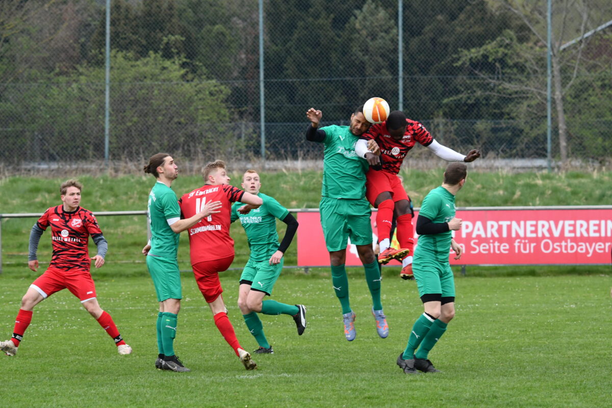 Der FC Weiden-Ost war am Ostermontag das einzige Team, das sein Heimspiel nicht gewinnen konnte. Die Dütsch-Elf rannte lange dem frühen Rückstand durch ein Kopfballtor von Adrian Robinson (19.) hinterher. In der zweiten Hälfte wurde es ruppiger und Schiedsrichter Stefan Koch hatte mit drei Zeitstrafen und einer gelb-roten Karte einiges zu tun. Weiden kämpfte sich nochmals zurück und kam durch David Hofmeister, ebenfalls per Kopf, zumindest noch zum Ausgleich (81.)