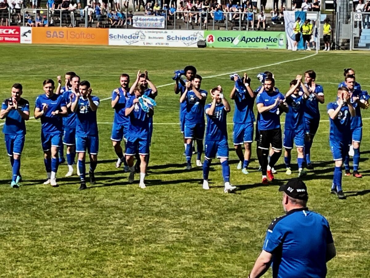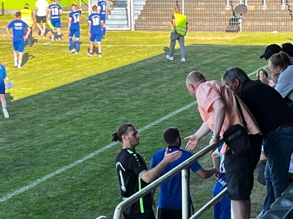Beeindruckend und bezeichnend für den Geist, der in der Weidener Mannschaft steckt und der auch auf die Anhänger der SpVgg SV übergegriffen hat, waren die Minuten nach dem Schlusspfiff. Man tröstete sich, klatschte sich ab und die Fans versuchten die am Boden zerstörten Kicker wieder aufzurichten. Davon sprach auch Trainer Michael Riester nach der Partie. “Es tut mir leid für die Jungs. Sie haben alles gegeben und trotzdem haben wir die maximal bitterste Niederlage kassiert. Den Abstieg müsse man nun erstmal verdauen. Das gehe nicht in ein paar Tagen vorbei und dauere vielmehr Wochen. “Aber wir stehen wieder auf und kommen wieder”, sagte der Coach und erntete dafür fast ebenso viel Applaus bei der Pressekonferenz wie für seine Zusage, dass “ich natürlich weitermachen werde als Trainer”.