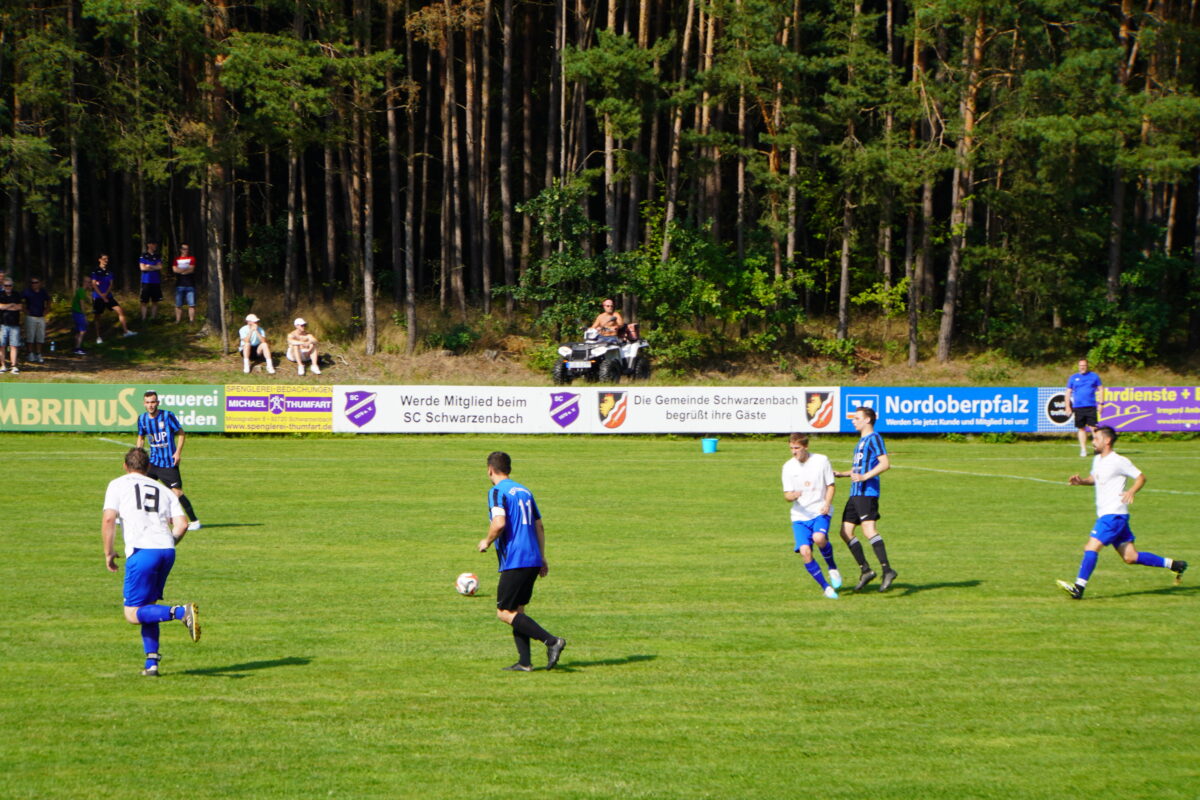 Die Heimmannschaft aus Schwarzenbach hatte zwar mehr Spielanteile, jedoch erspielten sie sich zunächst keine gefährlichen Chancen. Der TSV Pressath hingegen agierte effektiv und konnte in der 16. Minute einen Foulelfmeter für sich verbuchen. Dominik Klein foulte Korbinian Fischer im Strafraum, und der Schiedsrichter Roman Solter zeigte auf den Punkt. Michael Schmid verwandelte den Elfmeter souverän zum 0:2.