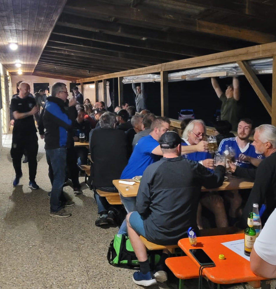 Wer es etwas deftiger liebte, ließ sich von Annalena und Silke Bauer eine bayrische Brotzeit herrichten. Die leckeren Mahlzeiten vom Grill waren so begehrt, dass nach Absatz vieler Portionen bereits um 19 Uhr die Meldung kam: alles restlos ausverkauft. Den großen Andrang nach flüssiger Ernährung konnte Sportheimwirt Sam Pritzl mithilfe einiger Sportler der ersten Mannschaft und drei agilen jungen Bedienungen gerade so bewältigen.