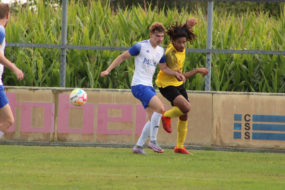 Tore: 1:0 Markus Peetz (28.), 1:1 Christoph Dumler (38.) – Zuschauer: 105. – Schiedsrichter: Julian Rupp. – Es war ein intensives Spiel, dem die beiden Ex-Bezirksligisten ihren Stempel aufzudrücken versuchten. In der 28. Minute gingen die Gastgeber durch einen präzisen Distanzschuss von Markus Peetz in Führung. Diese währte jedoch nicht lange, denn nur zehn Minuten später hatten die Gäste eine Antwort parat: Christoph Dumler setzte den Ball aus spitzem Winkel flach ins lange Eck. Mit diesem Unentschieden ging es auch in die Halbzeit.