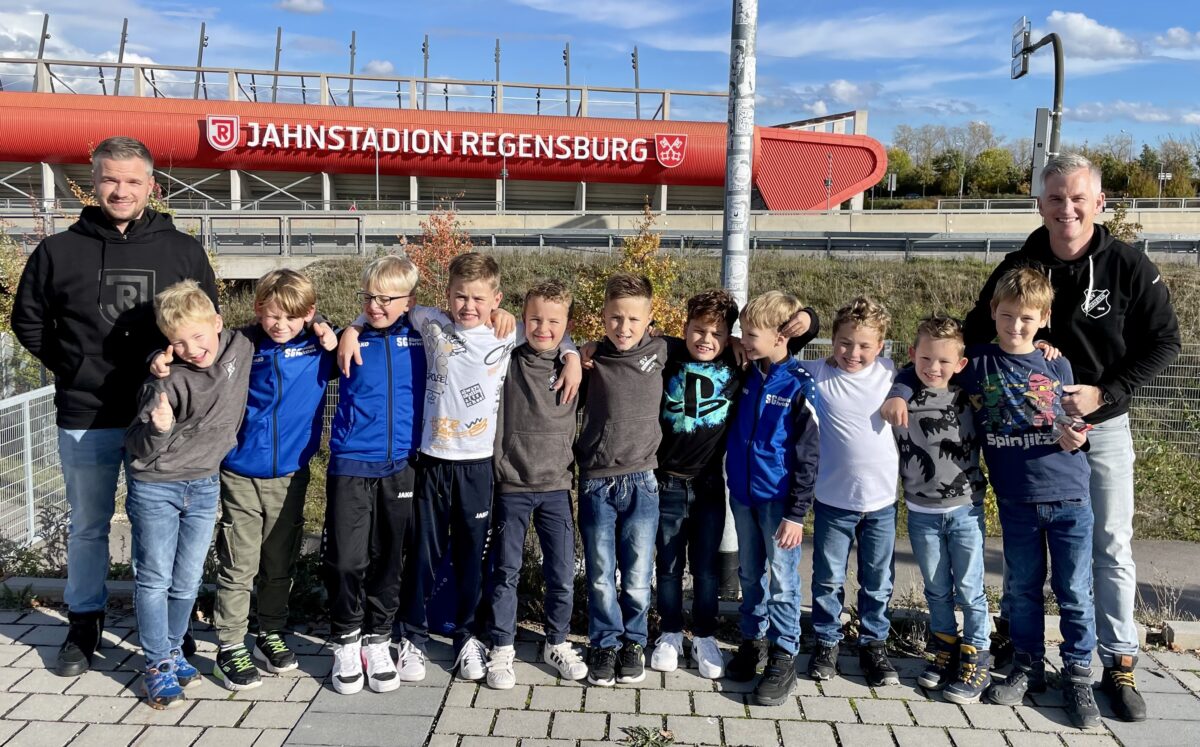 Trainer Matthias Trescher hatte die Bewerbung für seine F1-Mannschaft der Spielgemeinschaft Altenstadt/Parkstein als Einlaufkinder eingereicht. Nach der positiven Antwort des SSV Jahn Regensburg organisierte er einen spannenden Ausflug für seine Nachwuchskicker und ihre Familien.