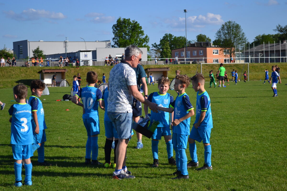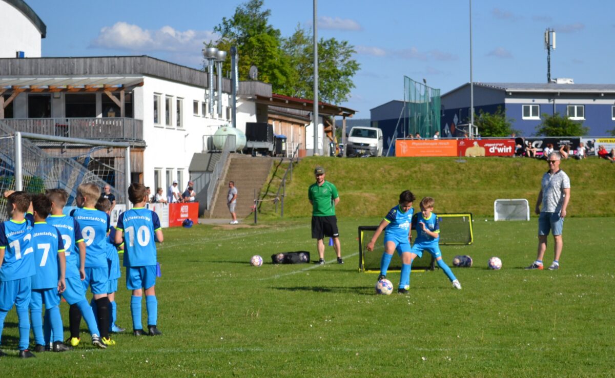 Es ist ein prächtiges Bild auf dem Sportgelände des SV Altenstadt/WN an diesem sonnigen Frühlingsabend. 50, 60 Kinder der Altersklasse U 10 zwischen sieben und zehn Jahren kicken nach den neuen Funino- beziehungsweise Minifußball-Regeln gegen- und miteinander. Neben der veranstaltenden Spielgemeinschaft SV Altenstadt/SV Parkstein schicken folgende Vereine ihren Nachwuchs auf den Rasen: DJK Irchenrieth, SpVgg Schirmitz sowie die Weidener Vereine SpVgg SV, FC Ost und DJK.