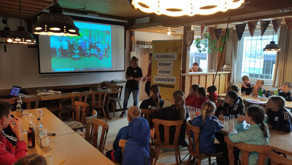 Auch das Team „Bananenflanke“, ein Verein für beeinträchtigte Kinder und Jugendliche, wurde vorgestellt. Dabei dreht sich natürlich alles um das runde Leder ganz nach dem Motto: „Fußball kennt keine Grenzen!“ Nicht fehle n durfte der Fußballfilm “Die Wilden Kerle, Teil VI“ oder das „Wunder von Bern“.