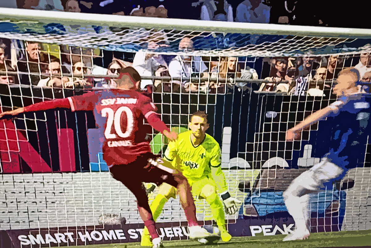 Kaum ist die Legende abgefeiert, dreht einer seiner legitimen Nachfolger das Spiel auf links: Hornbys zweiter Stich. Kempe kann’s verschmerzen, dass ihm ein letzter Kunstschuss ins Glück verwehrt blieb, als hätte der Fußballgott ihm geflüstert: „Ergebnis egal, Legenden bleiben.“ Für den Jahn bedeutete die Szene wenigstens das: Die tränenreiche Sportromantik überlagert auch diese Niederlage.