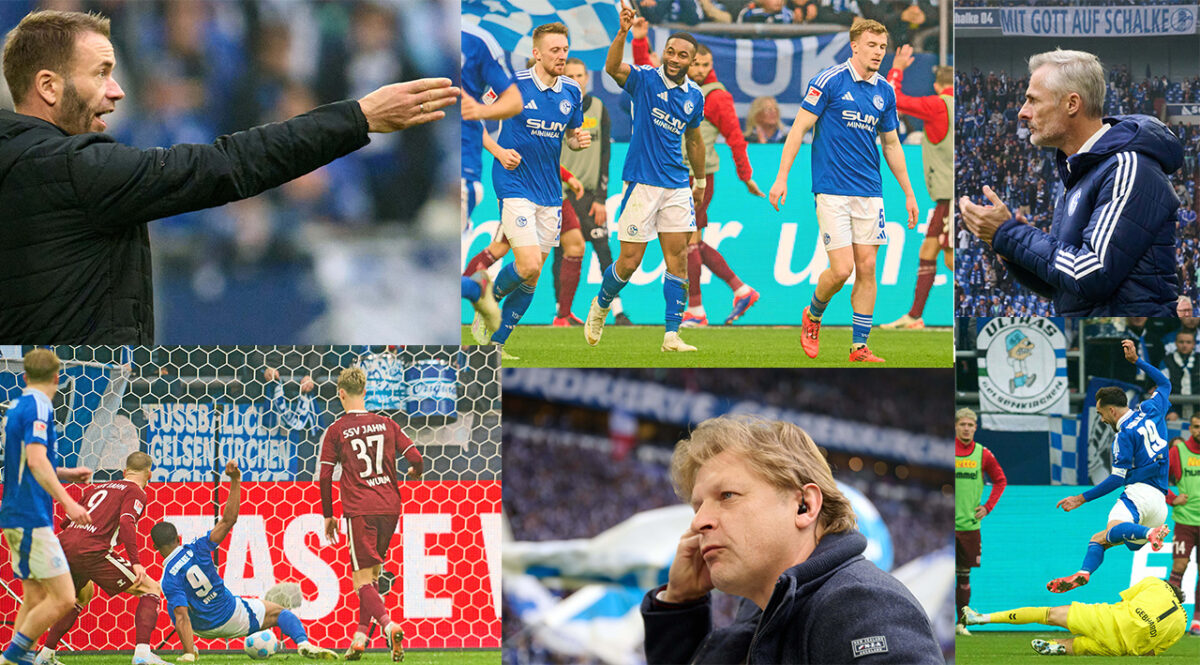 Genau das ist nun im Kellerduell beim auf Platz 17 natürlich unterbewerteten FC Schalke 04 passiert. Denn so dicht ist der Beton nicht, den Regensburg anrührt, als dass nicht jederzeit eine halbwegs gelungene Einzelaktion reichen würde, um den Riegel aufzubrechen: Eine Flanke von Tobias Mohr, die Leopold Wurm nicht vereitelt, eine Drehung am Fünfer von Kenan Karaman, den Bulic nicht eng genug abschirmt, und schon steht’s 1:0 (16.).