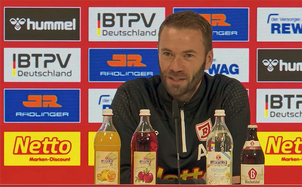 9000 Zuschauer wollen am Samstag das „andere Gesicht“ des SSV Jahn sehen, das Interimstrainer Andreas Patz verspricht – gegen Fürth aber nur in Ansätzen in der Abwehrschlacht in Unterzahl zu bewundern war. „Das war ein Pokalfight“, sagt Patz bei der PK, „und für mich persönlich natürlich ein toller Einstand.“ Aber um ihn gehe es ja nicht, stapelt der 41-jährige Thüringer tief. „Sondern es geht um die Mannschaft, den Verein, die Fans.“ Wichtig sei ihm gewesen, „dass wir nochmal ein anderes Gesicht zeigen, auch was zurückgeben“. Und deshalb sei die Freude erst einmal riesengroß.