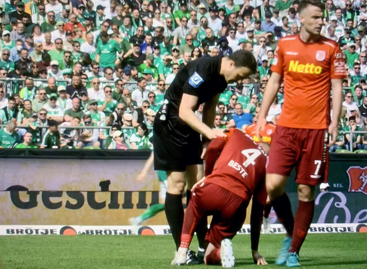 - Jetzt hat es Nico Ochojski erwischt, der nach einem Kopfballduell an der Außenlinie umknickt – der arme Kerl muss schließlich alleine an der Außenlinie zur Bank humpeln (61.).