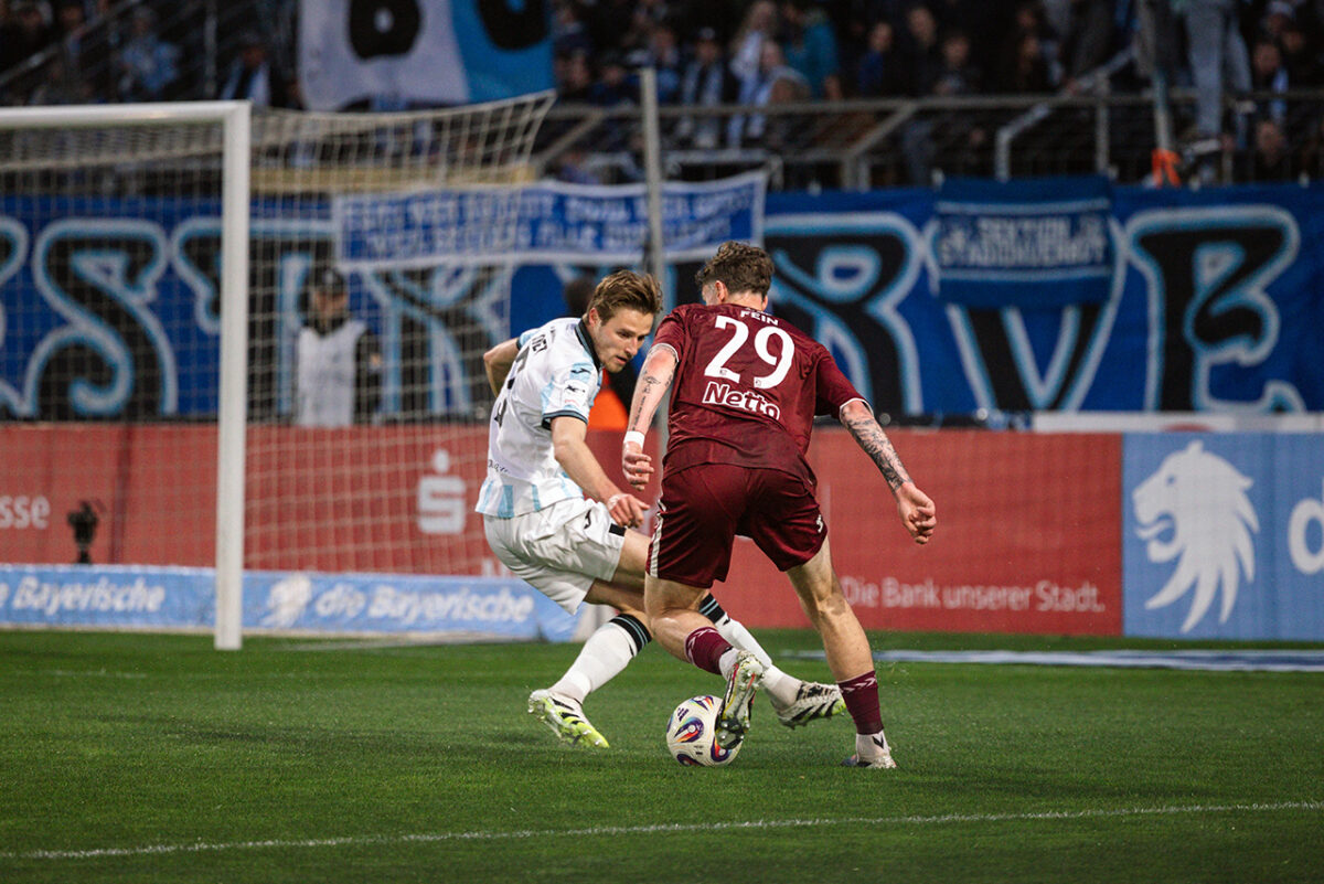 Doch Regensburg reagiert – und wie: Erst gleicht Leo Mätzler per Kopf nach Flanke von Adrian Fein aus (42.), dann vollendet Philipp Müller nach Steckpass von Christian Kühlwetter den Doppelschlag zur 2:1-Führung (45.+1).