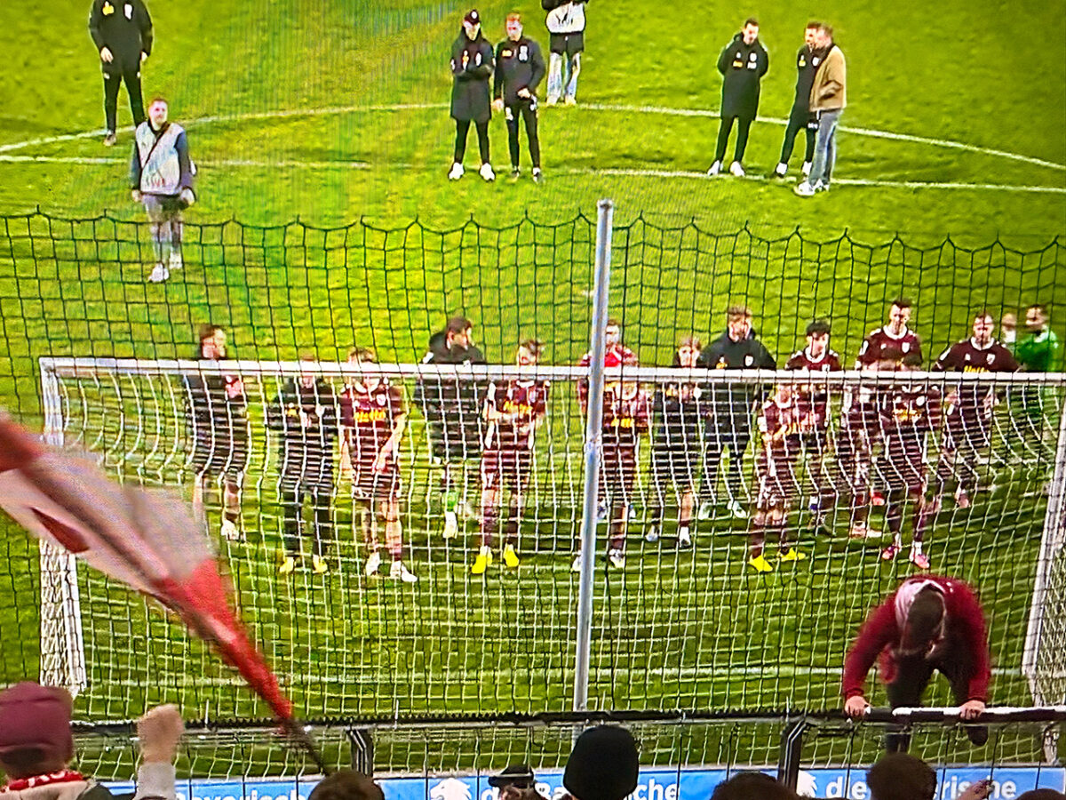„Wir haben richtig gut gespielt heute, speziell in der ersten Halbzeit. Es waren dann so ein, zwei Situationen gegen Ende, wo wir zu schläfrig sind, wo wir einfach den Gegner gefühlt einladen, die Tore zu schießen. Wir gehen dann mit 1:2 Rückstand in die Pause, du hast gefühlt Scheiße am Fuß. Ich glaube, dann haben wir zweite Halbzeit schon ein anderes Gesicht gezeigt. Und ich finde, dass wir uns im Endeffekt mindestens den Punkt verdient haben. Ja klar, den Elfmeter verschossen, aber im Endeffekt ist es so wie in den letzten Spielen, dass wir hinten etwas zu lethargisch verteidigen und vorne die Chancen einfach nicht nutzen.“