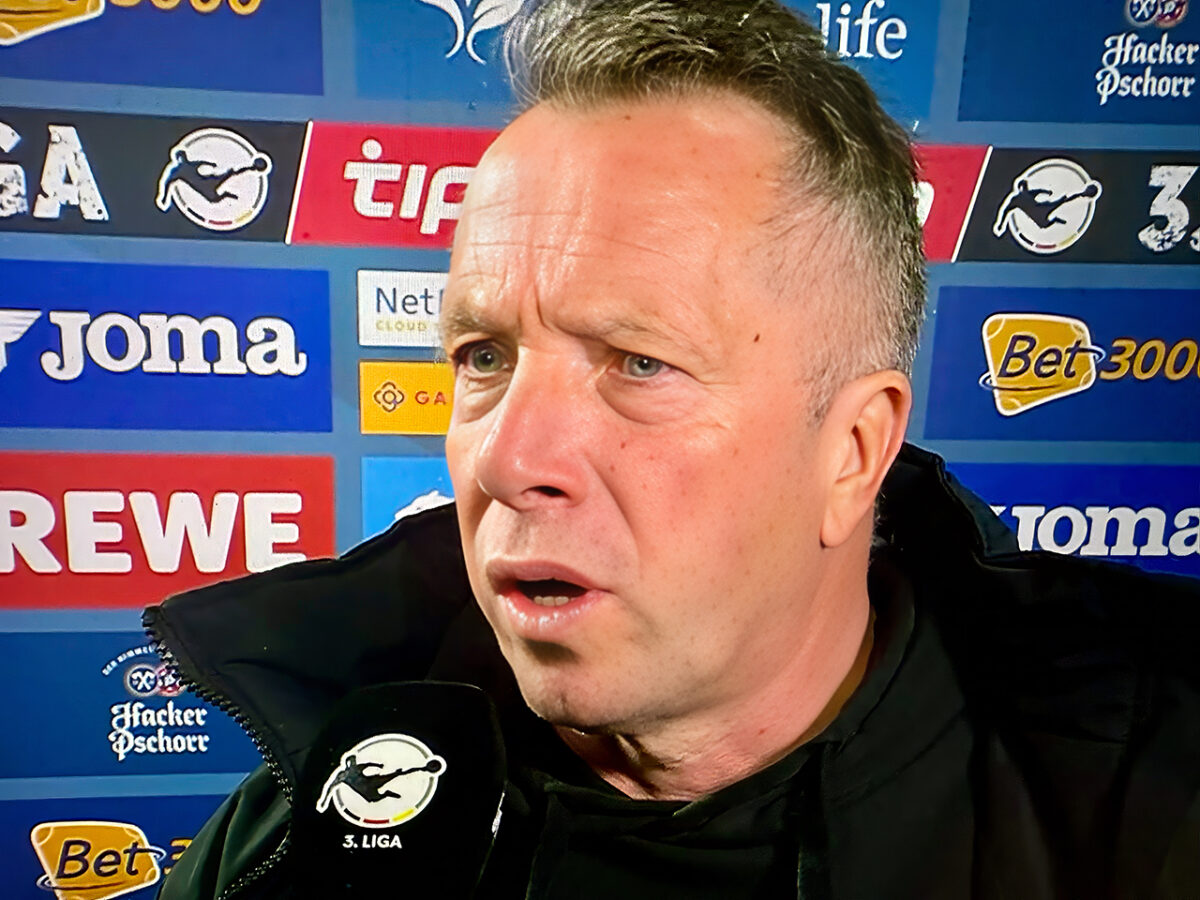 „Es war ein sehr intensives Spiel, gerade am Anfang haben beide Mannschaften hoch gepresst und hatten sehr viele Aktionen, die zu Toren hätten führen können. Wir hatten gute Möglichkeiten, Pfostenschuss, 60 hatte gute Möglichkeiten. Ich fand’s echt ein gutes Spiel, für die Zuschauer auch. Ich meine, wir hatten jetzt noch zwei kurzfristige Ausfälle heute Morgen, wir hatten eine blutjunge Abwehrkette, zweimal 20-Jährige, einen 22-Jährigen, die das sehr, sehr gut gelöst haben. Deshalb bin ich sehr zufrieden mit dem Spiel, mit der Leistung.