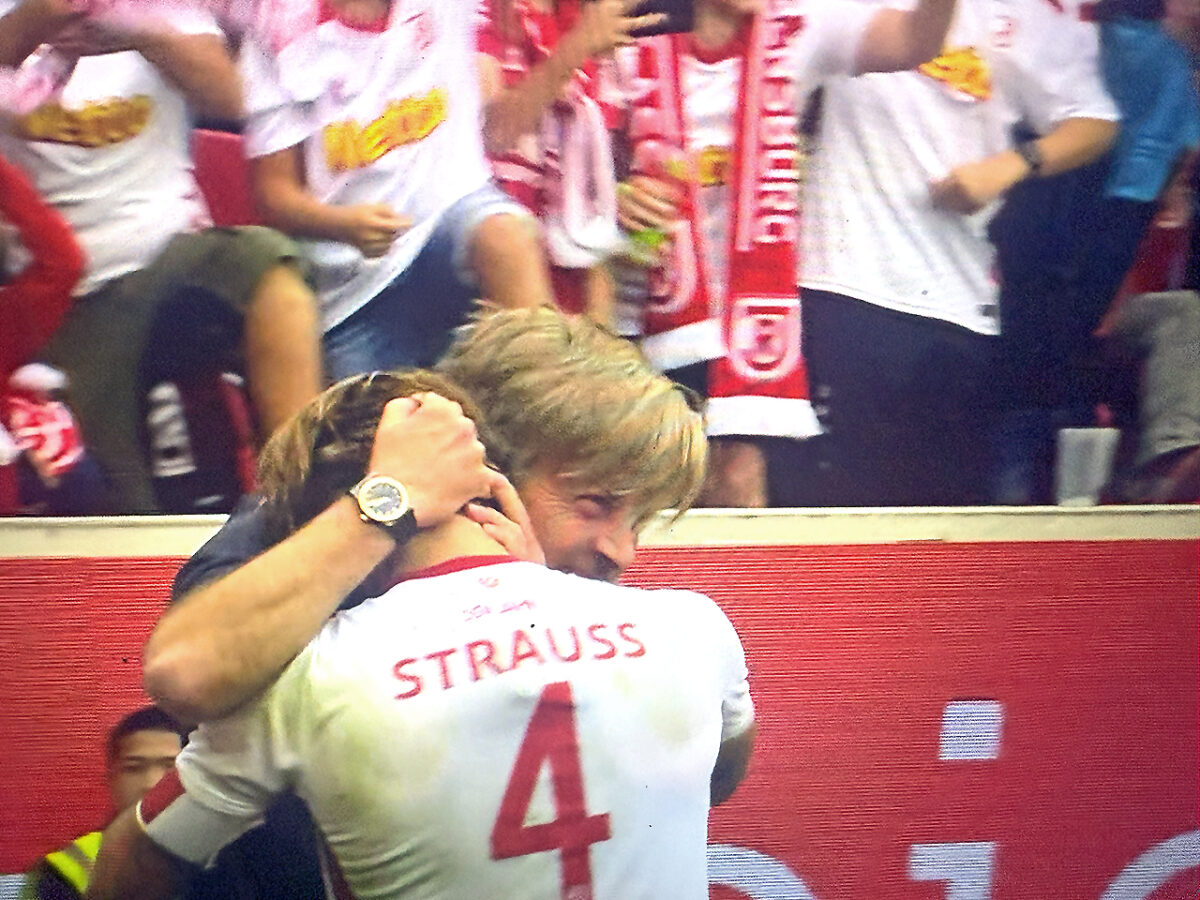 Plötzlich sind die Emotionen von der Graswurzel bis zum Stadiondach greifbar: Die Jahn-Arena kocht, Jahn-Coach Wimmer tobt, die Regensburger spritzen in jeden Ball – die Oberpfälzer sind erstmals Herr im eigenen Haus. Auch wenn sie diese Körperspannung nicht ganz bis zum Schluss durchhalten, reicht dieser Esprit dazu, die Ostwestfalen niederzuringen – mit einem Triumph des Willens durch Kopfballungeheuer Robin Ziegele nach Maßflanke des eingewechselten Sebastian Stolze zur 1:0 Führung (81.) und mit Einflüsterung von Torwarttrainer Philipp Tschauner: