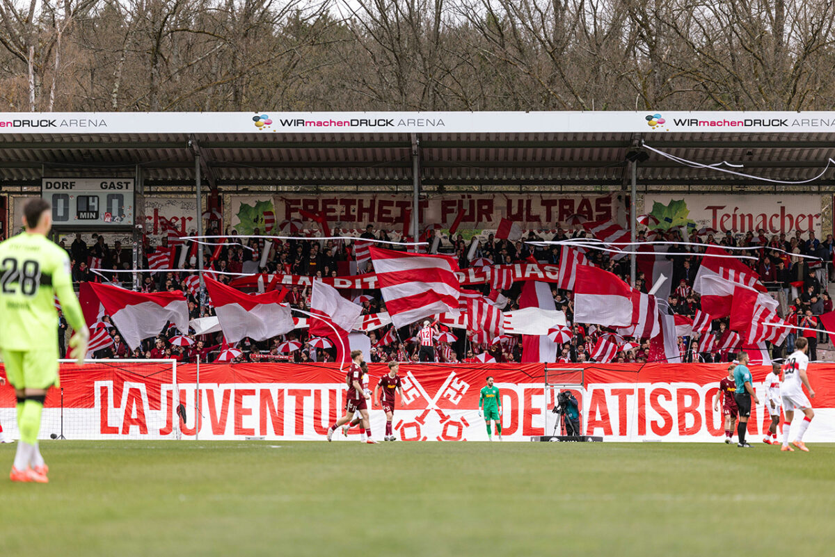 Umgekehrt stehen sich die Regensburger bei eigenen Aktionen in der Box, die man aufgrund vieler Ungenauigkeiten im Spielaufbau an einer Hand abzählen kann, eher gegenseitig im Weg – etwa als Benedikt Saller dem besser postierten Eric Hottmann die Kugel stibitzt und die Aktion anschließend verpufft. Die beste Regensburger Chance vergibt Nick Seidel nach einer verlängerten Ecke freistehend über das Tor (35.).