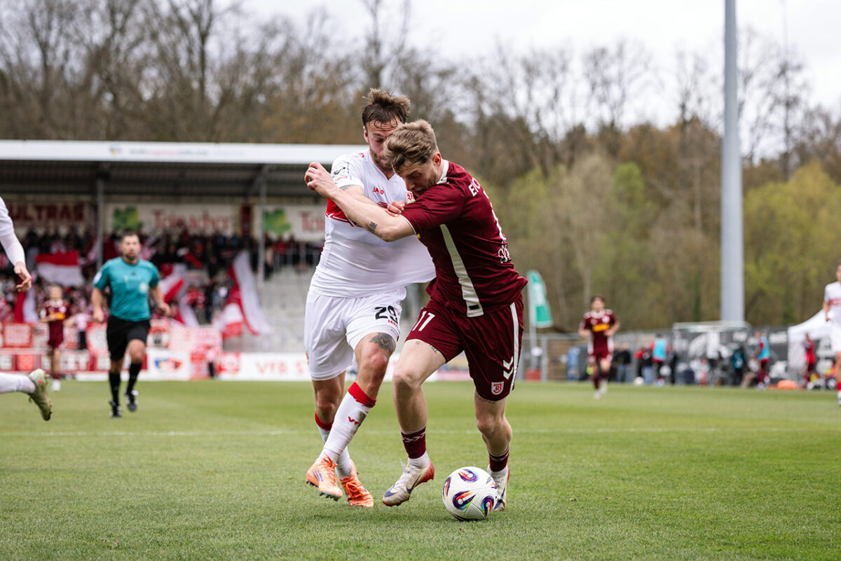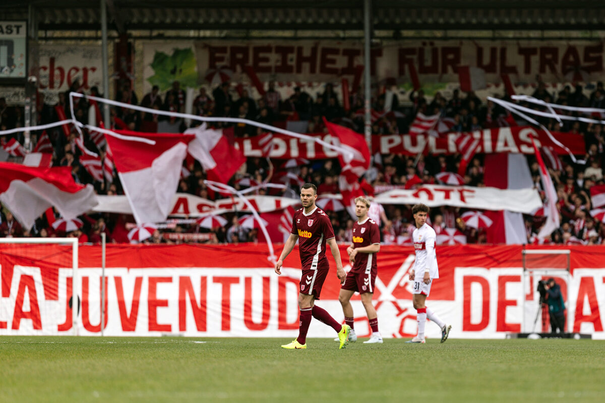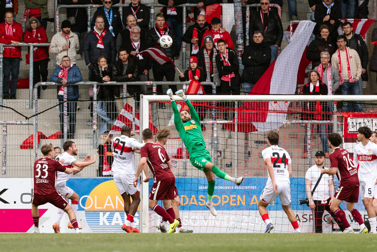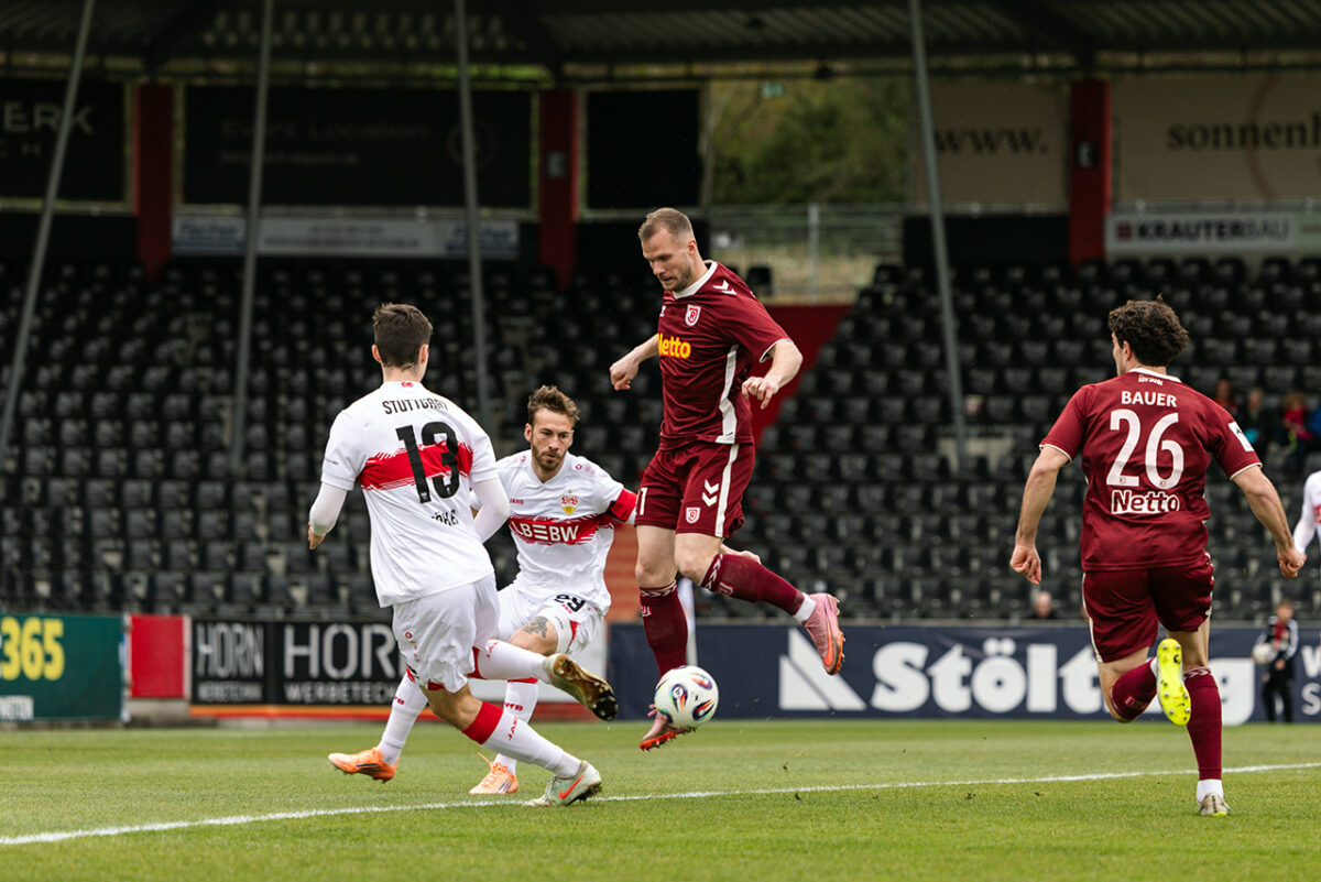 In der chaotischen zweiten Halbzeit funktioniert lange Zeit auf beiden Seiten so gut wie gar nichts, sieht man von einem gelungenen Doppelpass des eingewechselten Philipp Müller mit Nicolas Oliveira ab, den ersterer dann aus fünf Metern dem VfB-Keeper in die Arme schlenzt (77.).