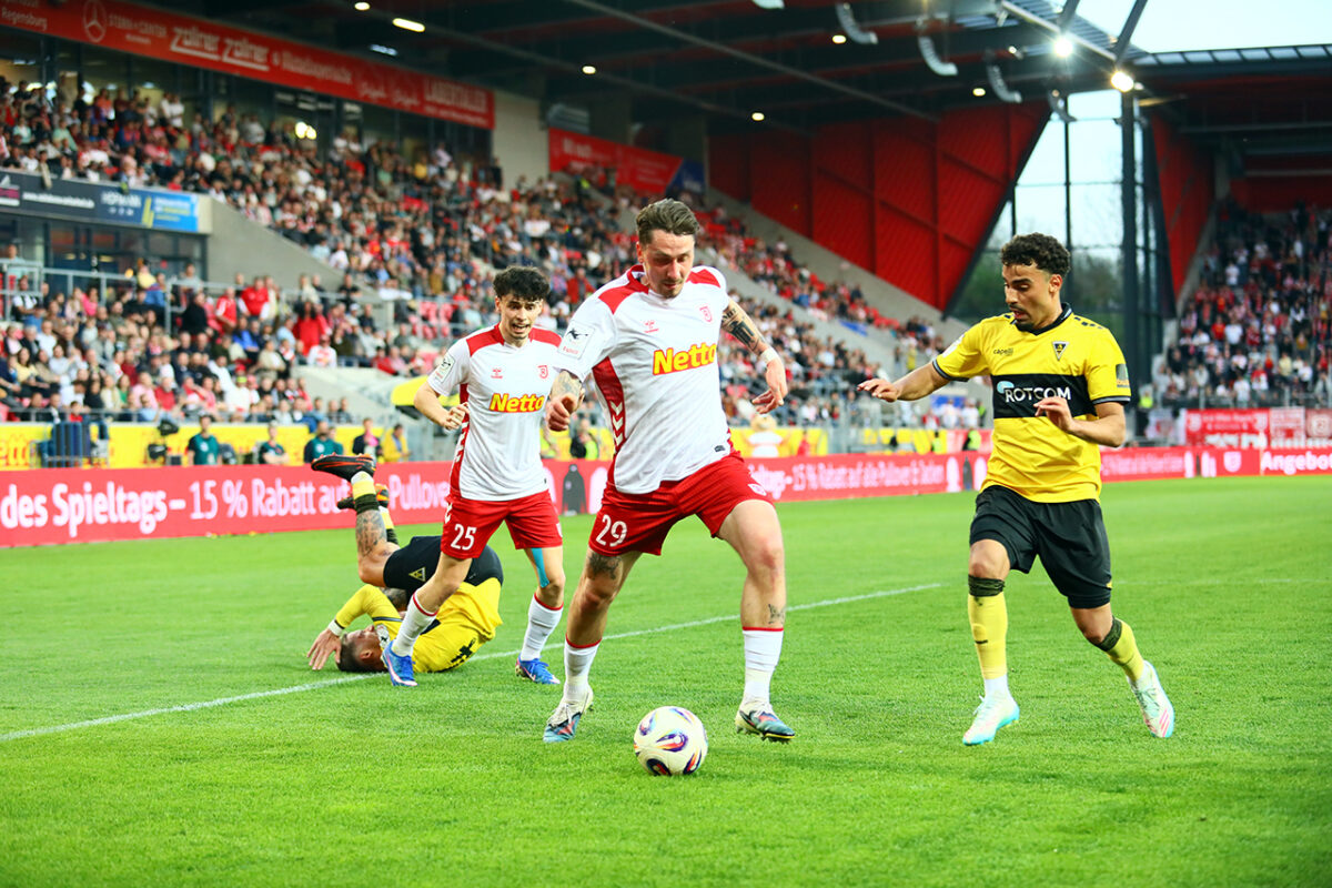 „Wir sind sehr gut ins Spiel reingekommen, hätten eigentlich früh führen müssen. Dann schlägt Regensburg mit ein, zwei Chancen zu. Wichtig war, dass wir dranbleiben.