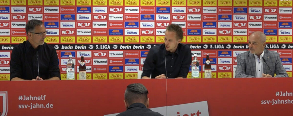 Auf dem linken Flügel verfüge man mit Noel Eichinger (FSV Zwickau) und Dominik Kother (Waldhof Mannheim) über zwei pfeilschnelle Spieler – „einer auch noch trickreich, der nach innen ziehen kann“. Man habe mit Niclas Anspach zudem einen zentralen Zehner verpflichtet: „Das ist auch toll, dass wir solche Spieler kriegen können. Wir waren bei vielen Transfers sicher nicht die einzigen und bestimmt auch nicht diejenigen, die das meiste Geld bieten konnten, aber wir haben ein Gesamtpaket schnüren können, da sind unser Trainingszentrum, Joe Enochs und ich dabei – und auch einfach der familiäre SSV Jahn.“