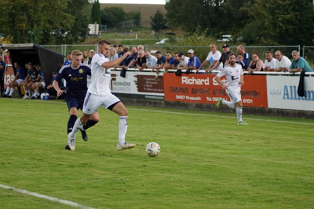 Auch die Tore fehlten auch nicht, denn schon mit dem ersten Angriff gingen die Gastgeber durch Michael Diepold in Führung. Doch Auerbach hielt jetzt dagegen und kam durch Lukas Grüner zum Ausgleich. Fast mit demselben Spielzug traf dann Burak Isci zum Führungstreffer für die Gäste, wobei hier Tremmersdorfs Keeper Michael Kaussler Glück hatte, dass er im Nachgang nur die Gelbe Karte sah, als er Isci foulte. Auerbach war spielbestimmend, aber die Härte auf beiden Seiten nahm nun zu. Schiedsrichter Klaus Seidl hatte das Spiel aber noch unter Kontrolle.