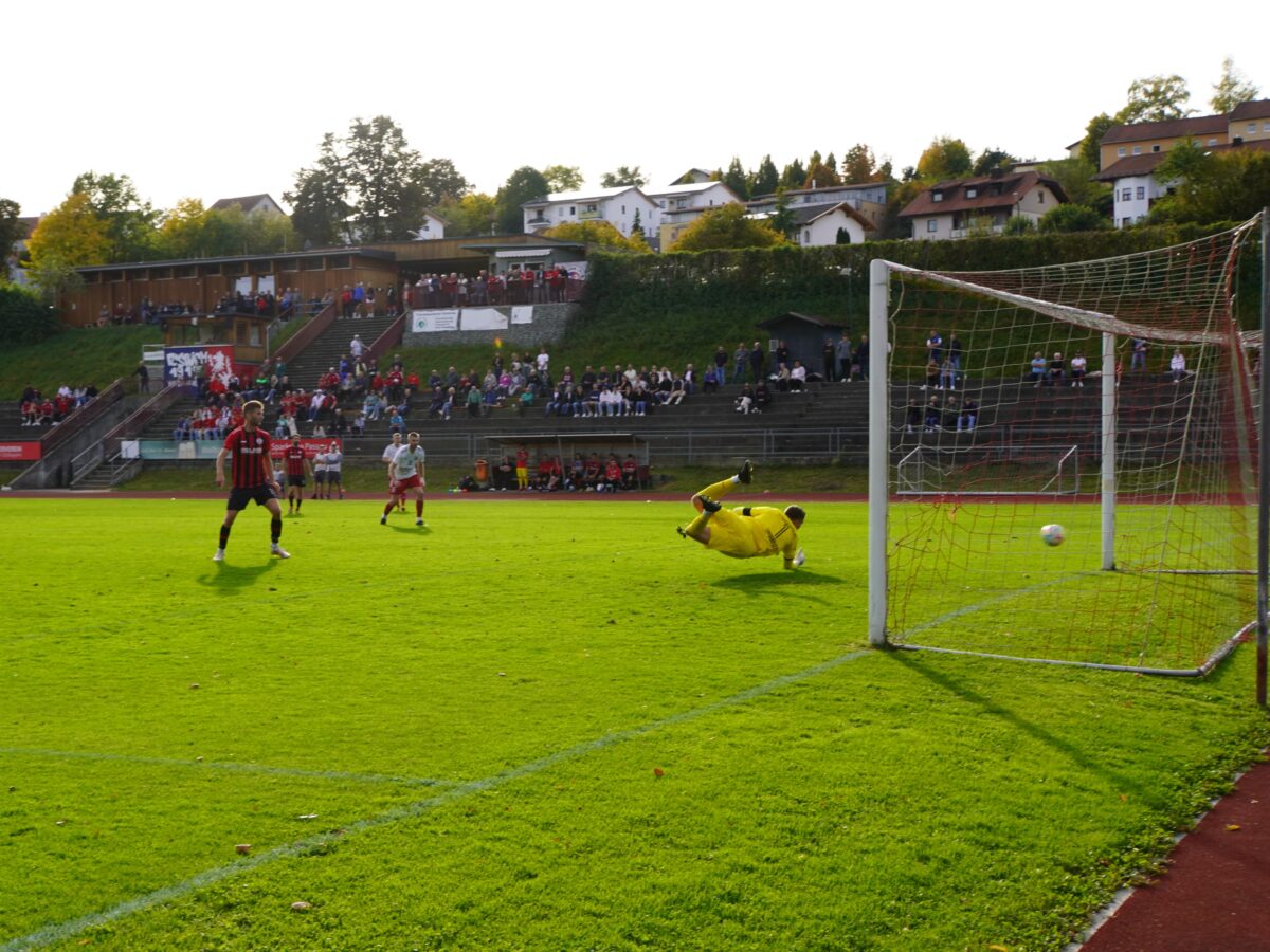 Der FC Sturm Hauzenberg startet vor 200 Zuschauern stürmisch in die zweite Halbzeit, Hannes Strohmaier knallt die Kugel unmittelbar nach dem Anpfiff aus 16 Metern zum dritten Mal an die Latte.