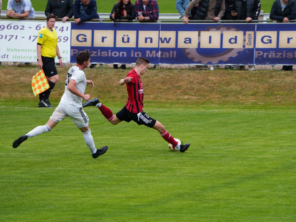 Luhe-Wildenau begann nervös, erspielte sich jedoch früh zwei vielversprechende Chancen zur Führung. Auf der Gegenseite bewahrte der SC-Torwart Daniel Hartnegg sein Team mit zwei herausragenden Paraden vor einem Rückstand, während Benjamin Urban, Spielertrainer des SC, eine erstklassige Gelegenheit frei stehend vor dem Tor ungenutzt ließ. In der 40. Minute brach schließlich Jamal Dubois über das halbe Feld durch und legte für Felix Diermeier auf, der zum umjubelten 1:0 einschob. Nur vier Minuten später erhöhte Diermeier nach einer starken Vorlage von David Bezdicka auf 2:0 und krönte sich mit seinem zehnten Saisontor zum Mann der ersten Halbzeit.