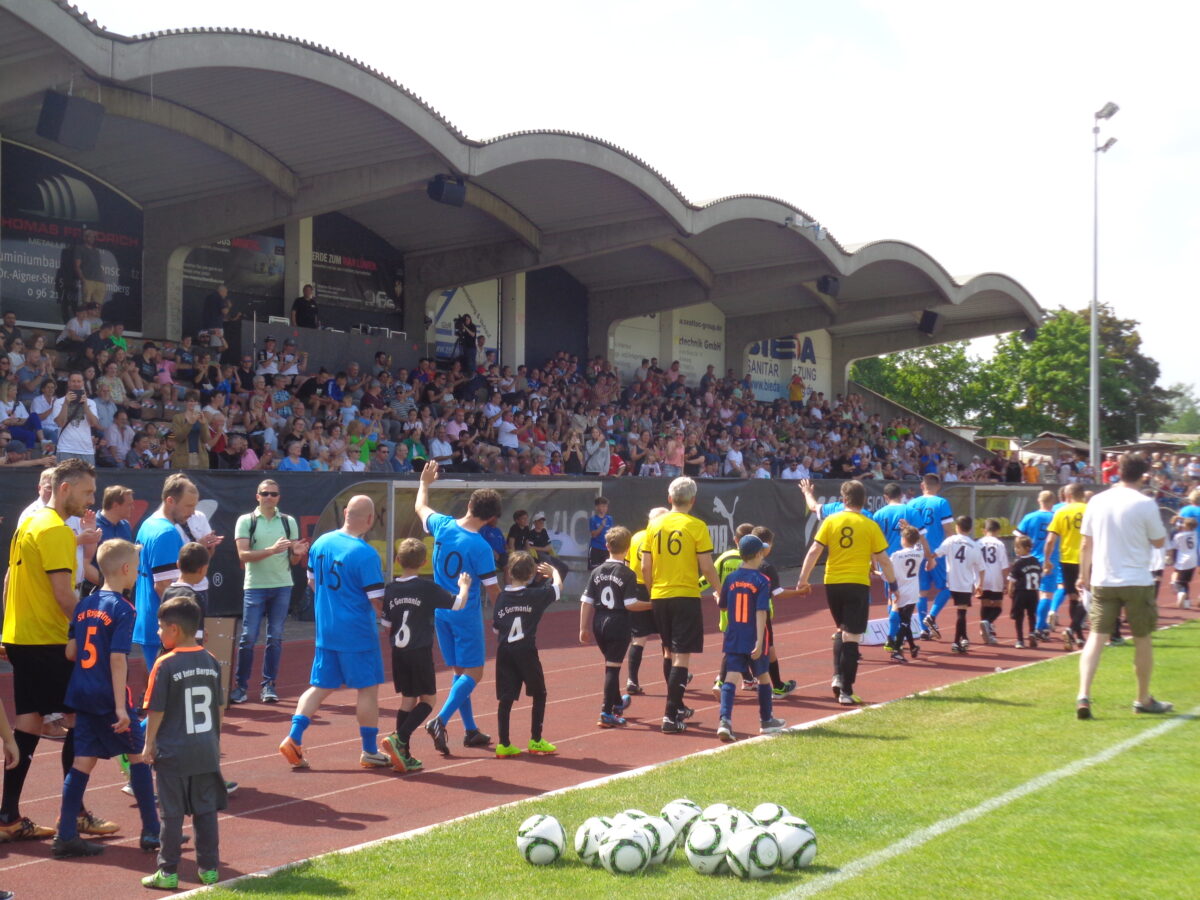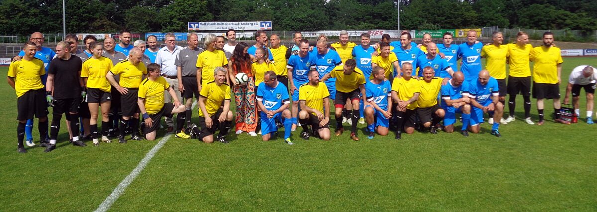 Ab 13 Uhr erfolgte der Einlass ins Stadion, eine Stunde später bestritten die Teams der Jurawerkstätte Amberg und HPZ Irchenrieth das Vorspiel. Die Gäste legten los wie die Feuerwehr und führten bereits nach drei Minuten mit 2:0. Gespielt wurden zweimal 25 Minuten mit Kleinfeldtoren. Am Ende war es ein standesgemäßes 7:1 für das HPZ, doch das war eher zweitrangig, der Spaß am Fußballspiel stand im Vordergrund und den hatten sichtlich alle Beteiligte.