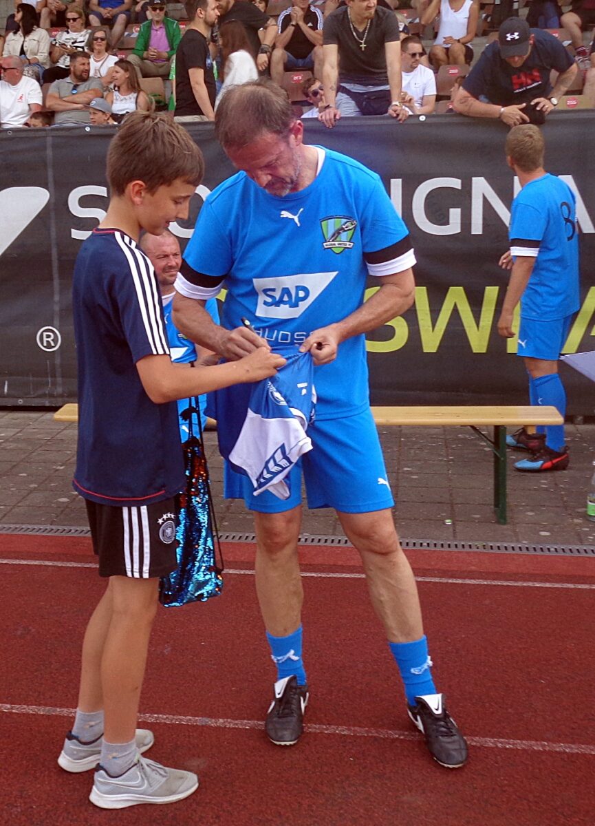 Bereits ab 10 Uhr konnten Kinder im Sportpark mit Laufkarten verschiedene Stationen absolvieren, um am Ende im Verlosungstopf einer großen Tombola mit wertvollen Preisen zu landen. Auch das Fan-Mobil der TSG Hoffenheim, der „Hoffe Express“, öffnete bereits um diese Zeit.