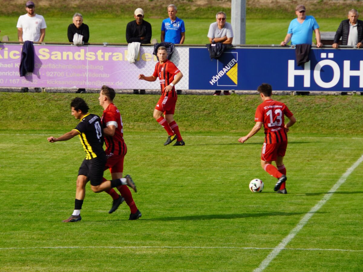 Vor 280 Zuschauern entwickelte sich von Beginn an ein intensives und kampfbetontes Spiel. Schon in der 16. Minute ging der SC Luhe-Wildenau in Führung. Nach einer schönen Kombination auf der linken Seite mit Jamal Dubois, dessen Schuss geblockt wurde, zirkelte David Bezdicka den Ball wunderschön ins lange Eck zum 1:0. Beide Teams hatten ihre Chancen, doch die Gäste aus Burglengenfeld hatten das Pech, gleich zweimal das Aluminium zu treffen. Mit der knappen 1:0-Führung ging es in die Pause.