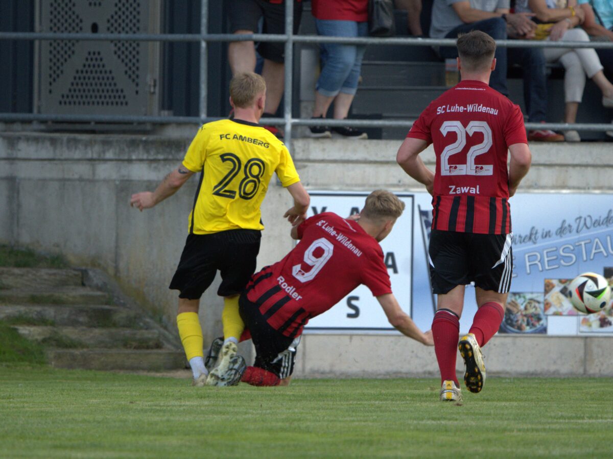 Nach der Pause beruhigte sich die Partie etwas, und die Gäste konzentrierten sich darauf, ihre Führung zu verteidigen. Der SC Luhe-Wildenau versuchte Druck aufzubauen, kam jedoch kaum zu klaren Chancen. In der Schlussphase hatte Benjamin Urban noch eine gute Schussmöglichkeit zum Ausgleich, doch der Amberger Torwart Tim Schreiner parierte stark, und der Nachschuss wurde von einem Amberger Spieler abgeblockt. Am Ende brachte der FC Amberg den knappen Vorsprung über die Zeit und feierte einen hart erkämpften Sieg.