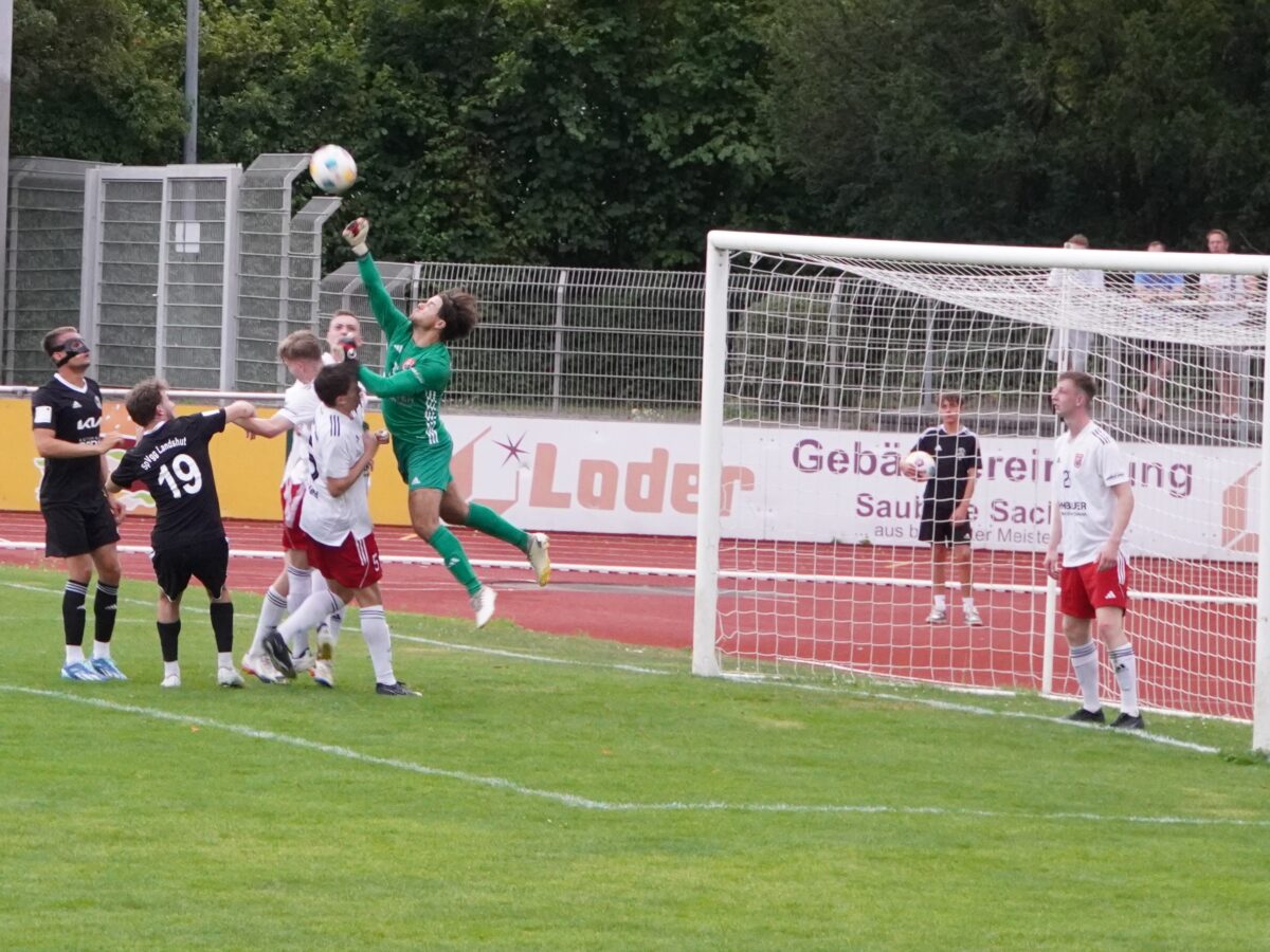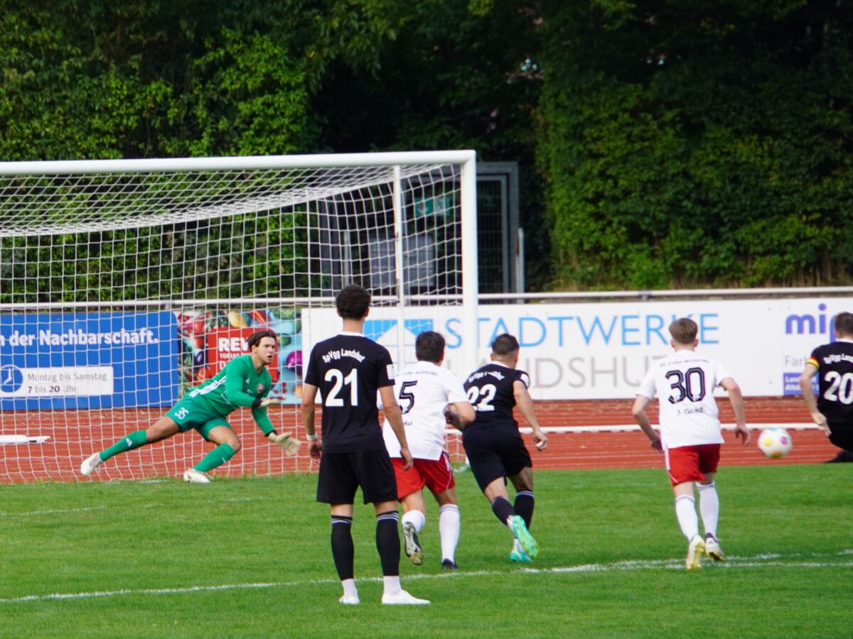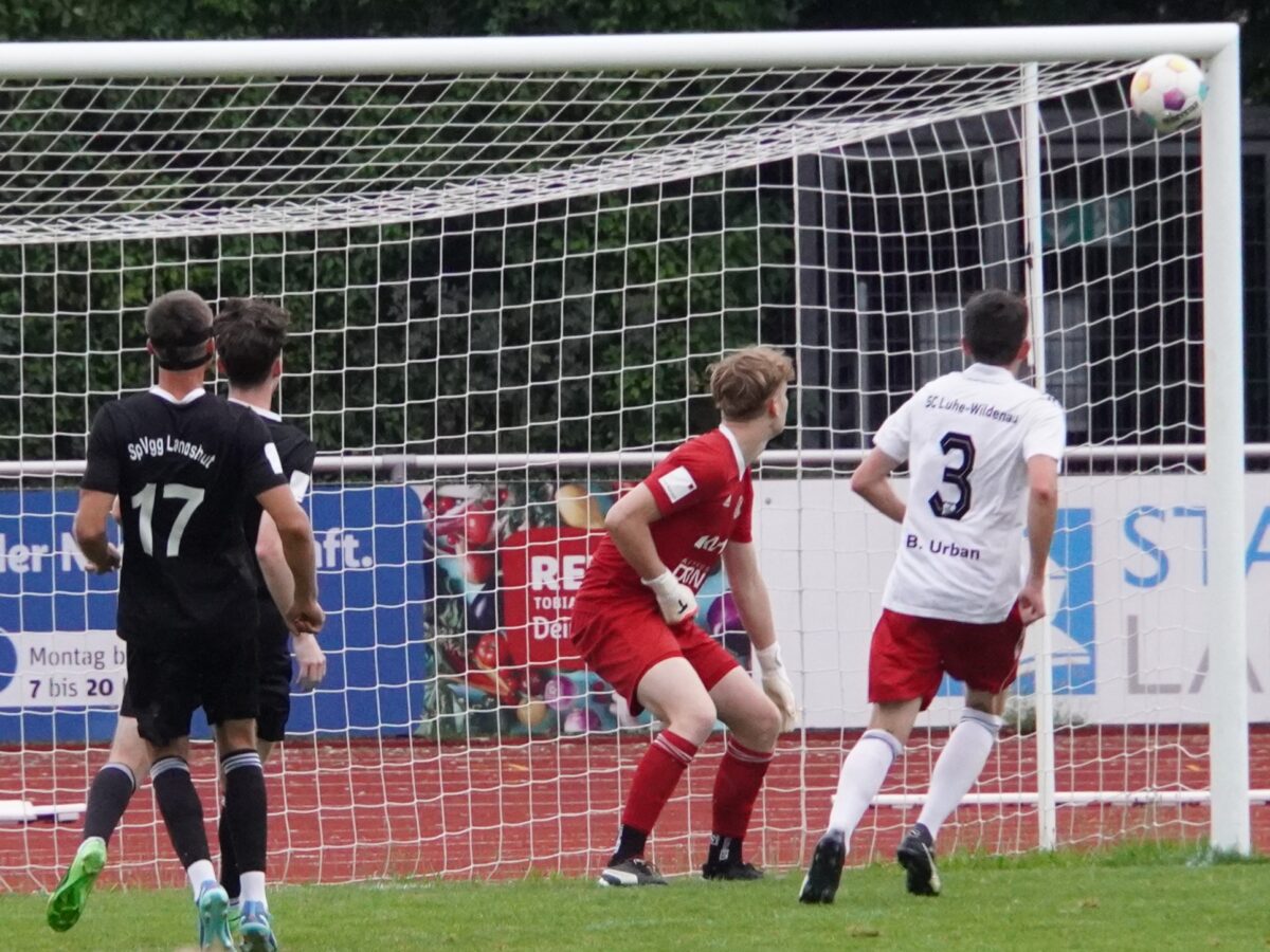 Max Baierl, der Torwart des SC Luhe-Wildenau, konnte sich immer wieder auszeichnen und hielt seine Mannschaft im Spiel. Auf der anderen Seite hatte der SC Gelegenheiten durch Benjamin Urban, Johannes Rodler und Thomas Lorenz, dessen Schuss Landshuts Torwart Louis Tournier gerade noch zur Ecke lenken konnte. So ging es mit einem 0:0 in die Halbzeitpause.