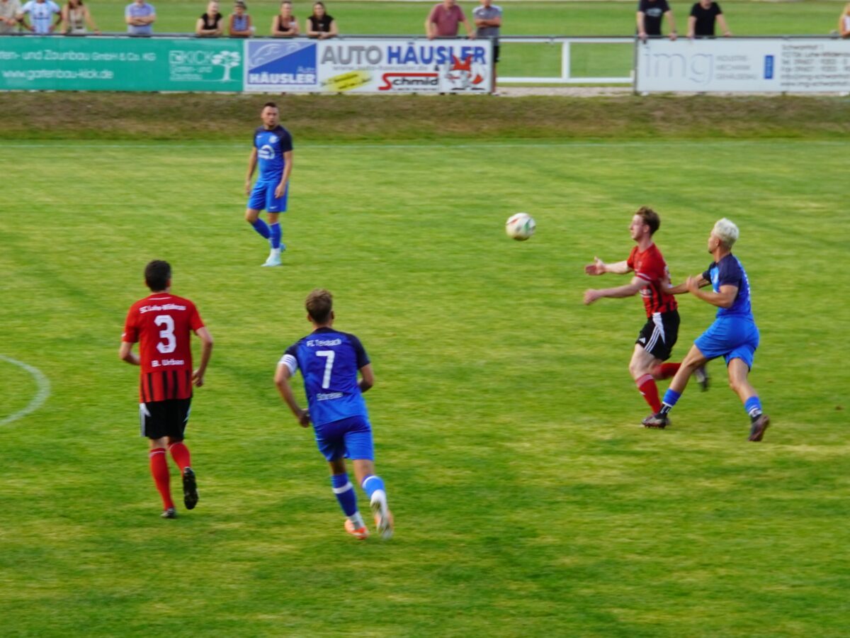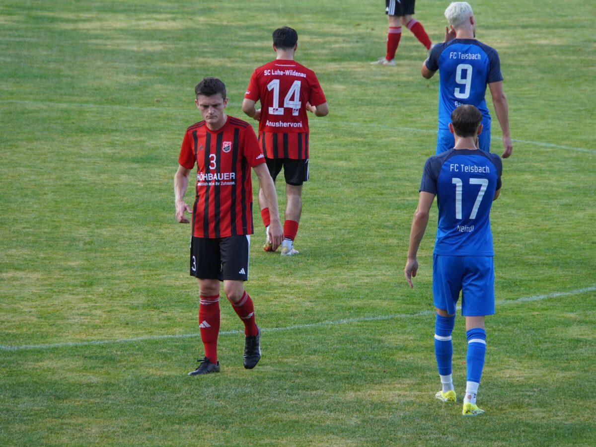 Von der ersten Minute an übernahm der SC Luhe-Wildenau bei sommerlich-schwüler Witterung klar die Kontrolle. Mit viel Ballbesitz, sicherem Kombinationsspiel und großer Geduld ließen die Hausherren die tief stehenden Gäste aus Teisbach beständig laufen. Die erste Großchance gehörte Benedikt Meckl, dessen scharf getretener Freistoß nur hauchdünn am Pfosten vorbeistrich. Auf der Gegenseite sorgte Oliver Gabel nach einem schnellen Umschaltmoment für den einzigen ernsthaften Abschluss der Gäste – sein Schuss jedoch flog über das Tor.