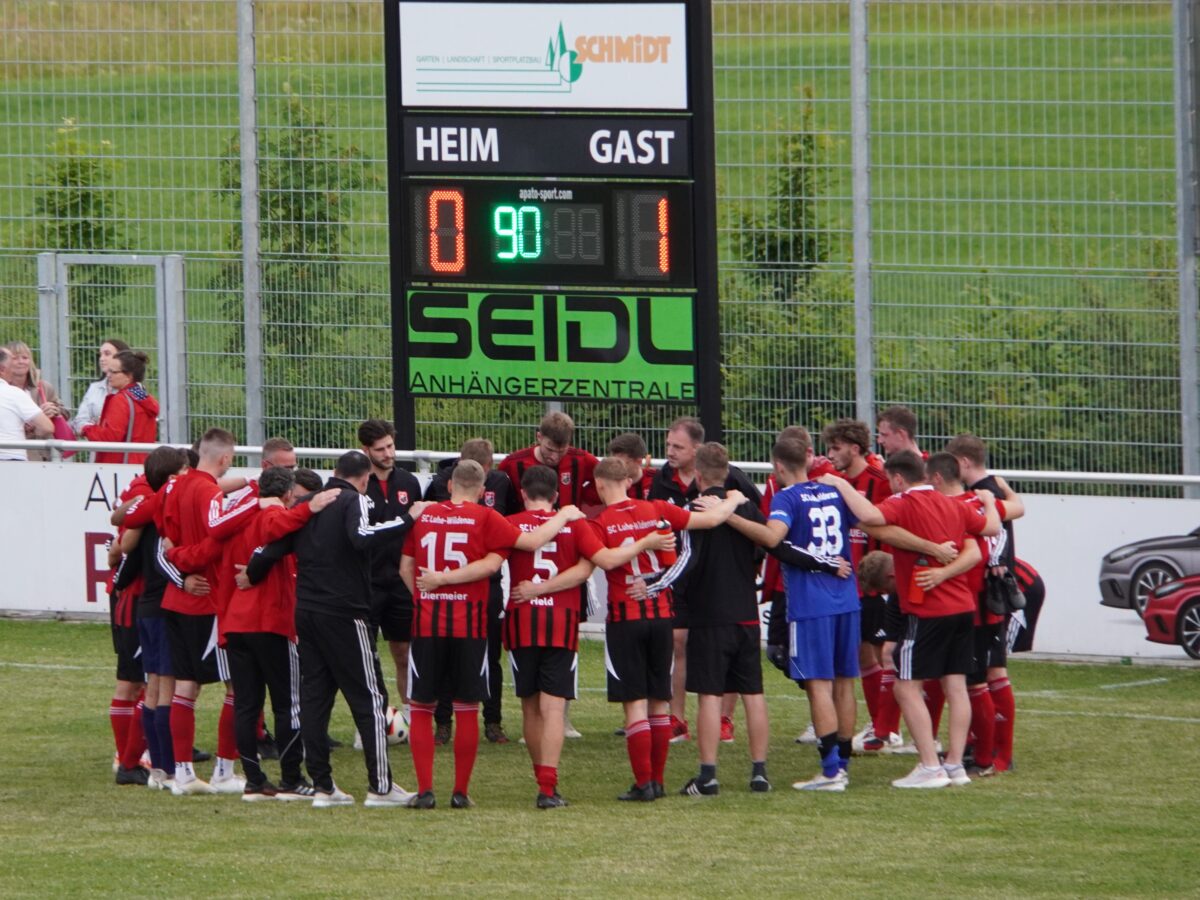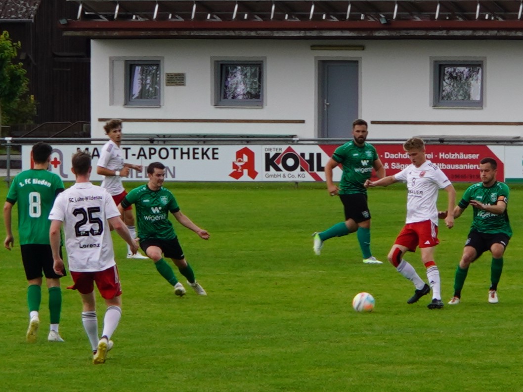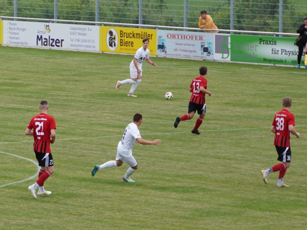 Am Samstag trat der SC Luhe-Wildenau erneut an, diesmal gegen den Bezirksliga-Absteiger 1. FC Rieden. Das Spiel begann mit einer frühen Führung für den SC durch Johannes Rodler in der 7. Minute. Ein Missverständnis in der Abwehr des SC führte jedoch zum Ausgleich durch Jonas Hofrichter. Trotz deutlicher Feldüberlegenheit und beherzter Verteidigung der Riedener endete die erste Halbzeit 1:1.