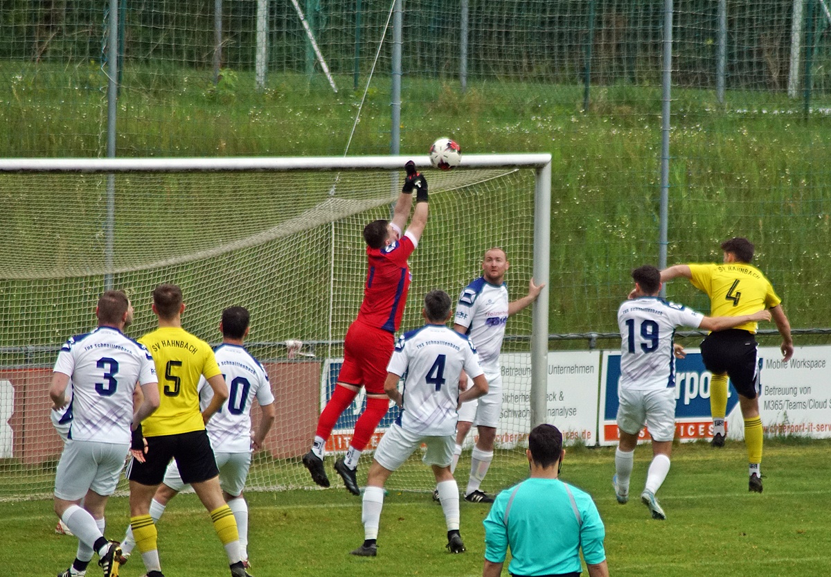 Nicht so klar wie es das Ergebnis vielleicht vermuten lässt, war der Hahnbacher Auswärtssieg in Schnaittenbach. Zwar stellte Ludwig Semmler (30.) die Weichen in der ersten Hälfte auf Sieg, nach der Pause erarbeitete sich aber der TSV gute Chancen zum Ausgleich oder sogar zu mehr. Wie so oft vergab das Heimteam aber zu viele Chancen und musste dann wenig später, binnen einer Minute, die spielentscheidenden Szenen schlucken. Johannes Kohl unterlief ein Eigentor zum 0:2 (72.) und Ralf Egeter (73.) musste mit Gelb-Rot vom Platz. In der Endphase schraubte Sebastian Kelsch (85./88.) das Ergebnis noch in die Höhe.