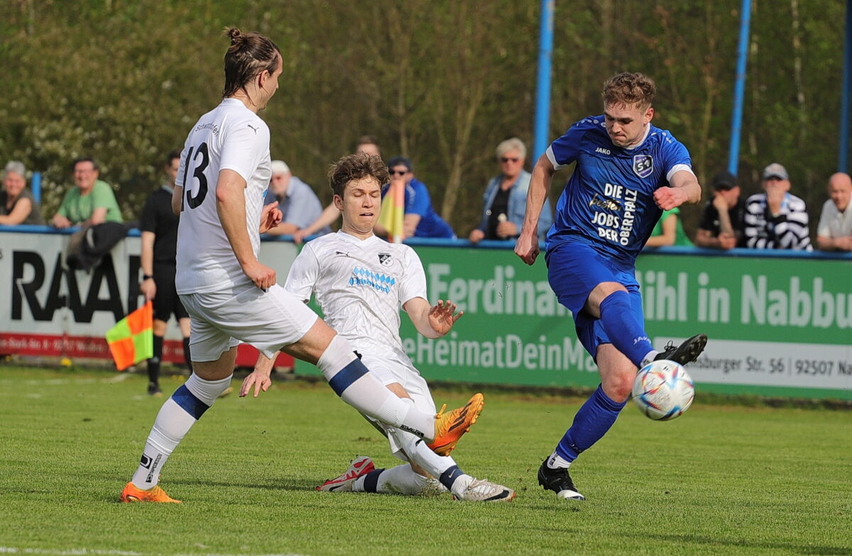 Einen gehörigen Dämpfer bekamen die Aufstiegshoffnungen der SV Grafenwöhr, während der SV Schmidmühlen wichtige Punkte gegen den Abstieg sammelte. Das Heimteam startete furios und ging bereits kurz nach dem Anpfiff durch Michael Holler in Führung (6.). Johannes Renner egalisierte schnell (17.) und es entwickelte sich eine ausgeglichene Begegnung. Mitte der zweiten Hälfte übernahm dann Schmidmühlen das Kommando. Zunächst erzielte Gustavo Beirao Gramaco Ribeiro per Elfmeter das 2:1 und nur wenig später musste Henri Schwemmer (Grafenwöhr) mit einer roten Karte vom Platz. Grafenwöhr versuchte zwar trotz Unterzahl nochmal alles, brachte aber nichts Zählbares mehr zustande.