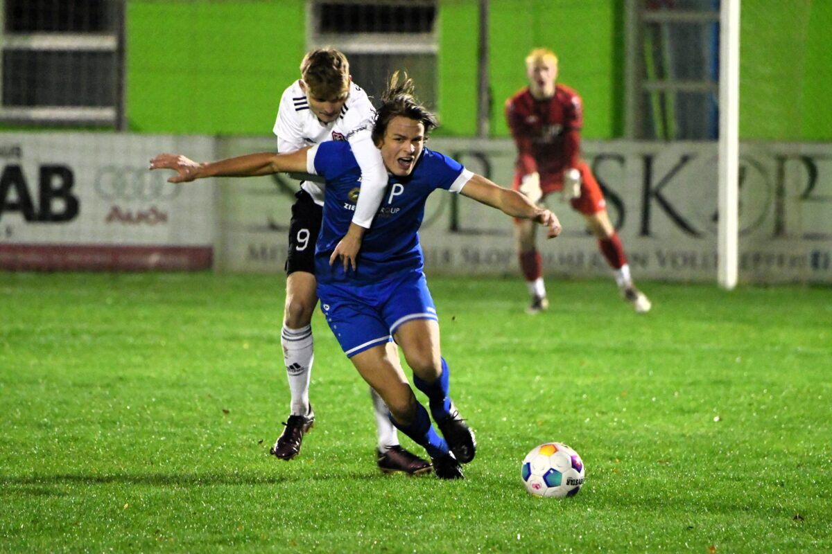 Die Gastgeber traten ohne die erkrankten David Bezdicka und Martin Ruda an. „Von der ersten Minute an hat meine Mannschaft den Kampf angenommen, weil wir bei solchen Platzverhältnissen wie immer im November unser eigentliches Spiel nicht zeigen können“, betonte Riester. Die SpVgg erspielte sich schon in den ersten 20 Minuten mehrere Chancen, doch Moritz Zeitler (9.), Josef Rodler (14.), Stefan Pühler (21.) und Patryk Bytomski (24.) vergaben jeweils knapp. Eine wundervolle Hereingabe des unermüdlichen Hendrik Geiler führte in der 28. Minute zum hochverdienten 1:0 durch Bytomski. Der Ex-Grafenwöhrer nutzte dies sehenswert zum umjubelten 1:0, das der Torschütze noch mit einem Salto krönte. „Endlich habe ich in unserem Stadion zum ersten Mal getroffen. Wir sind mit enormem Selbstbewusstsein in das Spiel gegangen und haben verdient gewonnen“, sagte Bytomski. Danach machte Torjäger Stefan Pühler seinen 15. Saisontreffer in seiner bekannten eiskalten Manier (36.).