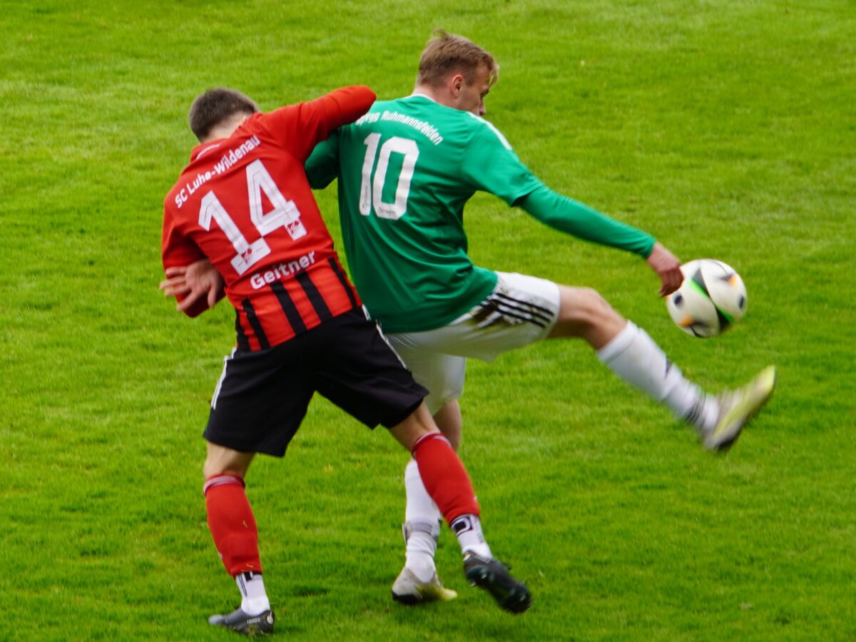 Die Gäste begannen von Anfang an tief stehend, während der SC Luhe-Wildenau Mühe hatte, sein Spiel zu entfalten und nur wenige Chancen kreieren konnte. Trotz zweier Vorlagen von Noah Hammer auf der rechten Seite gelang es Johannes Rodler und Nico Argauer nicht, diese zu verwerten. Auch Ruhmannsfelden hatte eine aussichtsreiche Gelegenheit, Kapitän Wittenzellner vergab frei stehend nach einer Ecke. Zum Halbzeitpfiff blieb es vor 245 Zuschauern beim torlosen Unentschieden.