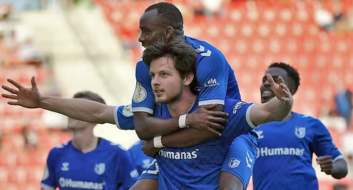 Nach dem 0:2 scheint die Luft zunächst mal raus aus diesem Pokal-Fight: Von Gefahr für das Magdeburger Tor kann bis hierhin nach dem Seitenwechsel nicht die Rede sei. Aber immer, wenn du glaubst, es geht nicht mehr … Ein sehenswerter Doppelpass zwischen dem omnipräsenten, aber bislang glücklosen Konrad Faber und Dominik Kother versenkt letzterer aus spitzem Winkel im langen Torkreuz – unhaltbar von Andi Hoti abgefälscht, 1:2 (63.).