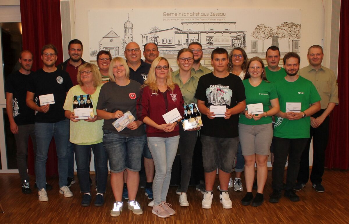 Doch die 357 Zähler der Feilersdorfer Feuerwehr, die dafür zum Gemeindemeister ausgerufen wurde und mit 14 Teilnehmern obendrein den Meistbeteiligungspreis einheimste, konnten sich ebenso sehen lassen wie die 350 Ringe der Feuerwehr Zessau-Weihersberg und die 349 Punkte der LBV-Naturschutzgruppe.