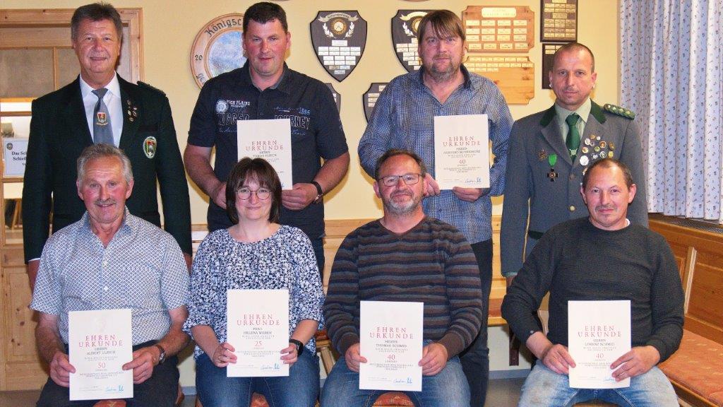 Bei seinem Grußwort lobte Gauschützenmeister Manfred Zölch die gute Vereinsführung und die sehr gute Jugendarbeit. Auch er bedauerte den Ausfall vieler Veranstaltungen 2021 auf der Gauebene. Im Anschluss führte Zölch mit Schützenmeister Weber die Ehrungen für langjährige Mitgliedschaft durch. Beide bedanken sich bei den Geehrten für Ihre Treue zum Verein.