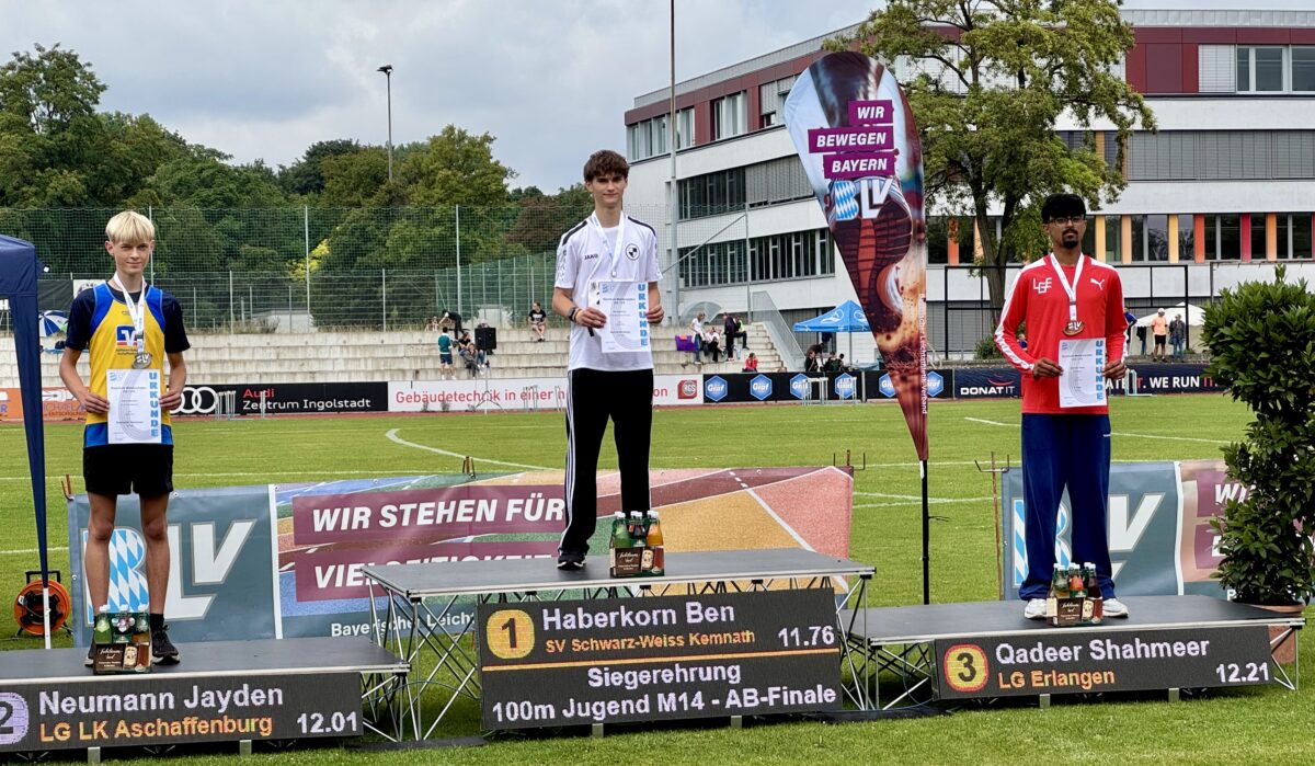 Bei den Bayerischen Meisterschaften der U16 und U23 in Ingolstadt lieferte Ben Haberkorn zwei starke Auftritte ab – und wurde dafür mit Gold über 100 Meter und Silber im Weitsprung belohnt. Für den 14-jährigen Leichtathleten vom SV Schwarz-Weiß Kemnath war es der bislang größte Erfolg auf Landesebene.