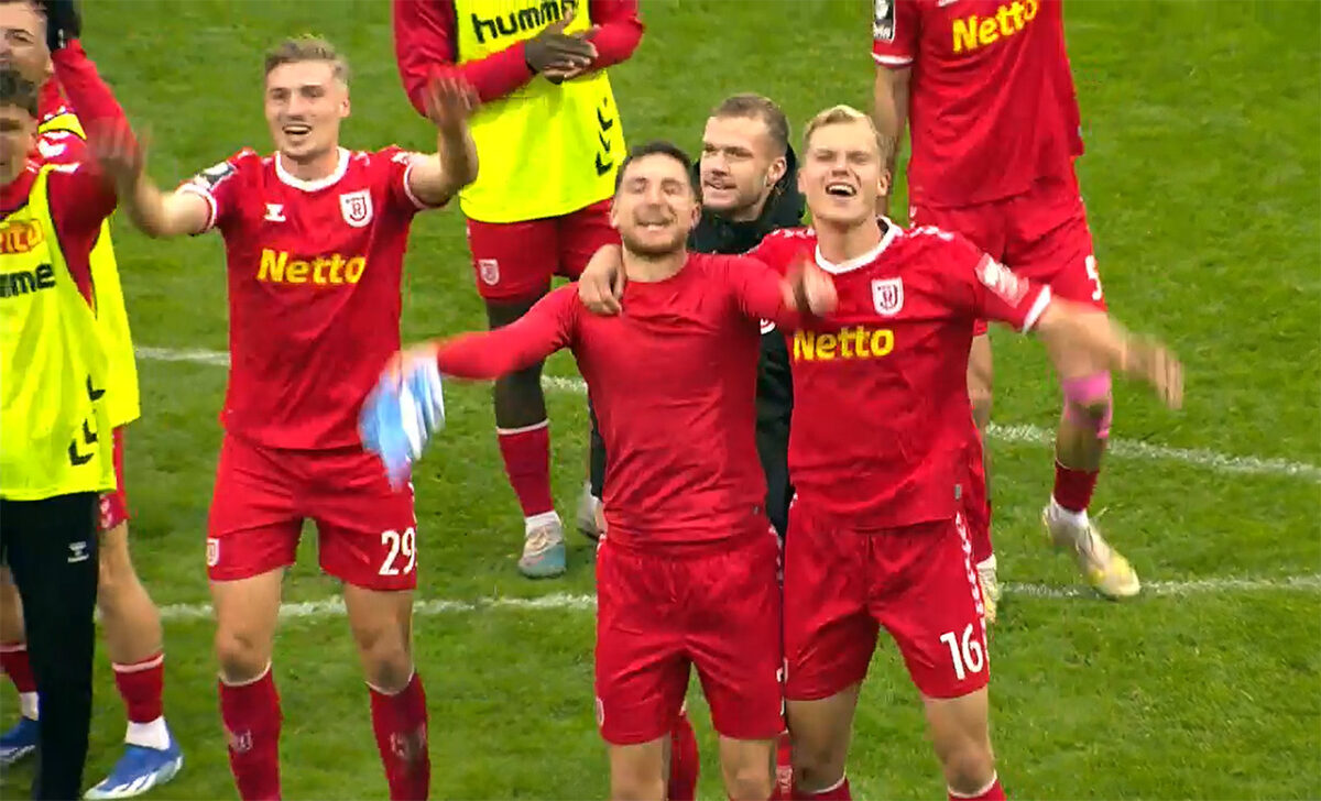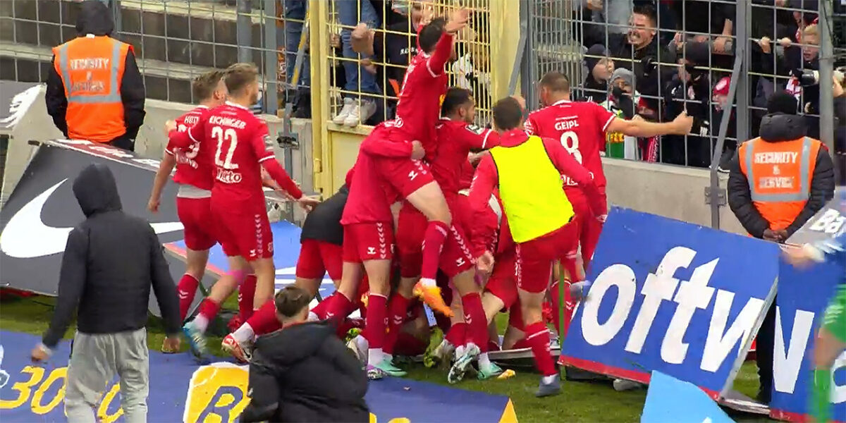 Besonders freut er sich für Tobias Eisenhuth, der mit seinem ersten Profi-Tor überhaupt den Dreier festgemacht hat: „Normalerweise ist er ein Freistoßspezialist, heute hat er nachgewiesen, dass er ein cooler Fußballer ist.“ Und was sagt der Matchwinner selbst? „Das ist einfach ein geiles Gefühl, für uns alle, die Fans.“ Der Flow, auf dem man dahingleite, begünstige, „dass man immer weiter macht, ob Rückstand oder schweres, langes Spiel wie heute, in dem man nicht richtig drin ist – wir belohnen uns auch immer sehr spät, arbeiten hart, weil jeder für den anderen kämpft, die Chemie stimmt.“ Dieses geile Gefühl übertrage sich: „Das trägt uns relativ weit.“