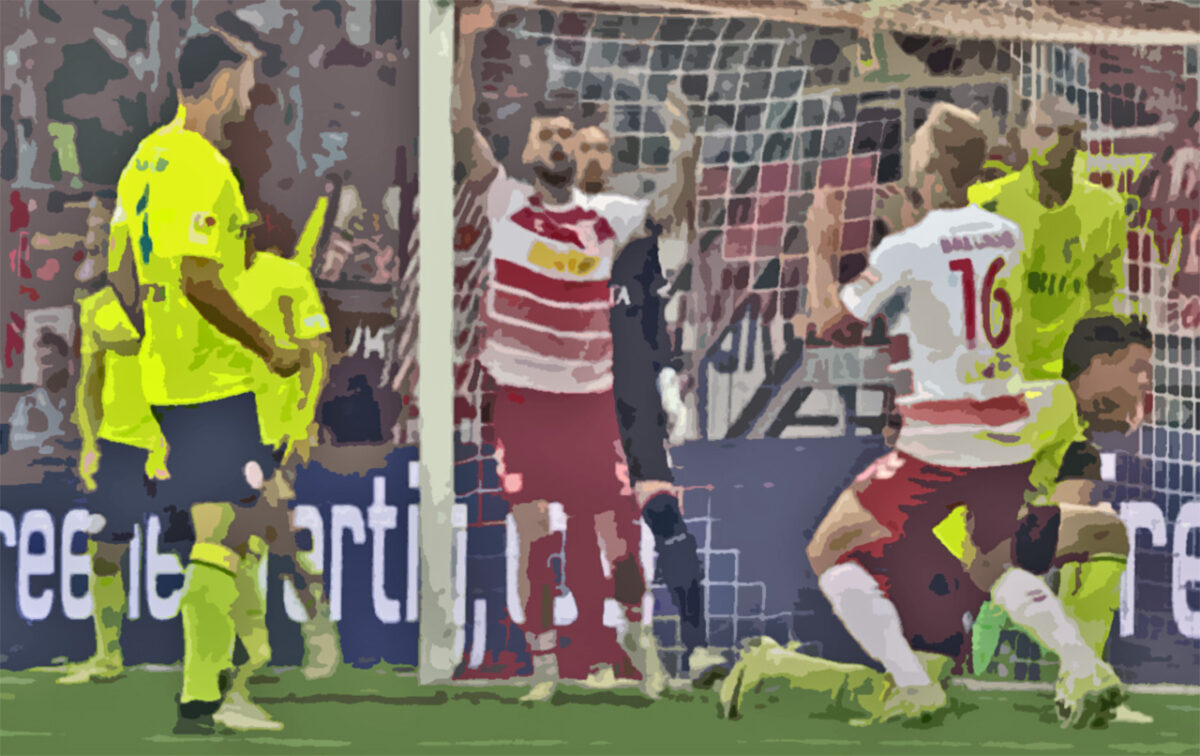 Binnen fünf Minuten dreht der Zweitliga-16. das Spiel mit signifikanter Beihilfe der Heimmannschaft: Aleksandar Vukotić drischt die Kugel widerstandslos in den Sechzehner, Ivan Prtajin stochert am Leder, Jahn-Keeper Felix Gebhardt bekommt bange Sekunden keinen Zugriff, Robin Heußer fummelt den Abpraller durch die Beine über die Linie, 1:1 (66.). Gefühlte dreimal hatten die Regensburger die Kugel schon geblockt und bekommen sie doch nicht weg – die Quittung: der so was von überflüssige Ausgleich, gerade als sich der Jahn wieder etwas befreit hatte.