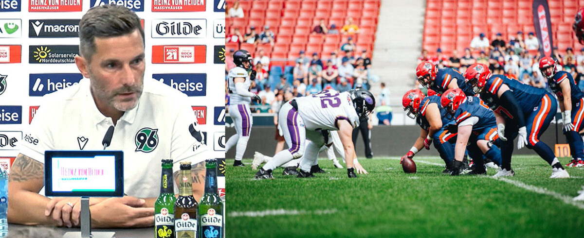 Und das wird doppelt schwer. Denn den ehemals grünen Rasen haben am vergangenen Sonntag die Hamburg Sea Devils und Galaxy Frankfurt beim 18:24 im Hinspiel der European League of Football gründlich ruiniert. „Wenn ich da rausgucke“, sagt H96-Coach Stefan Leitl bei der PK vor dem Auftakt-Heimspiel gegen Regensburg verärgert, „haben wir es in diesem Jahre endlich geschafft, einen guten Platz hinzubekommen und lassen ihn uns in einer Woche komplett zerstören.“