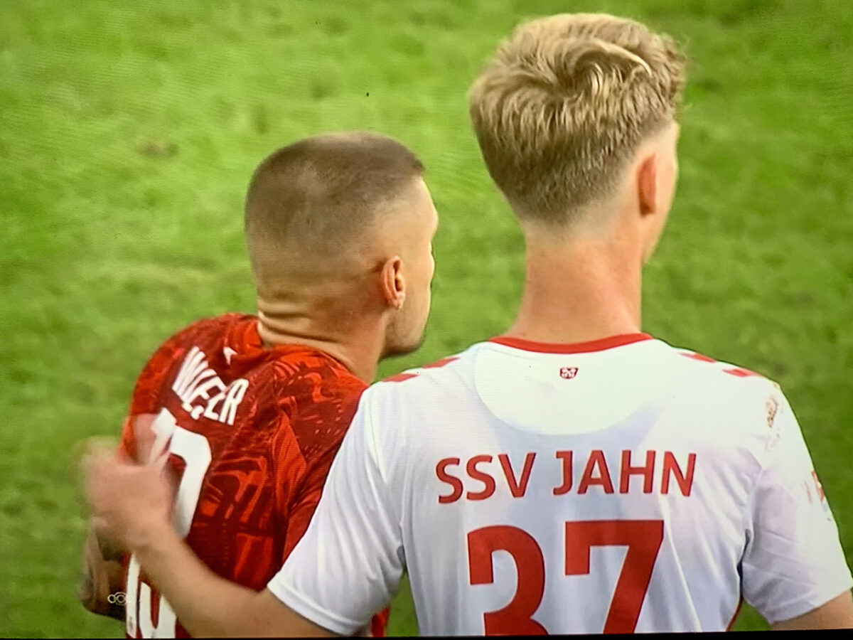 Chaos im Jahn-Strafraum: Ritters halbhohe Flanke vom rechten Strafraumeck Richtung Ache wird geblockt, unübersichtliches Getümmel vor dem Fünfer, Pingpong zwischen Abwehr- und Angriffsfüßen, endlich ist die Kugel aus der Gefahrenzone (56.). Auf der anderen Seite köpft Startelf-Debütant Leopold Wurm Geipls Freistoßflanke frei aus 14 Metern knapp links vorbei – steht dabei aber im Abseits (59.).
