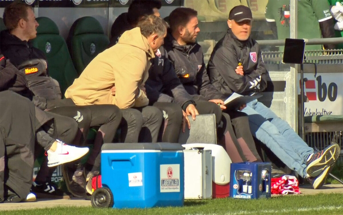 Statt sich aufs Spiel zu konzentrieren, verhaken sich die Regensburger in völlig überflüssigen Rangeleien, bei denen Schönfelder aufgeweckter wirkt als am Ball (56.). Kommt mit Valdrin Mustafa anstelle von Bulic mehr Zug in die Offensive (59.)? Von wegen: Ausgerechnet Außenverteidiger Leon Sommer mit Ballgewinn am gegnerischen Strafraum, die Kugel rauscht knapp rechts vorbei (61.). Joe Enochs sieht weiteren Handlungsbedarf: Für die blassen Elias Huth, Christian Viet und Bene Saller kommen Niclas Anspach, Jonas Bauer und Bryan Hein (69.).