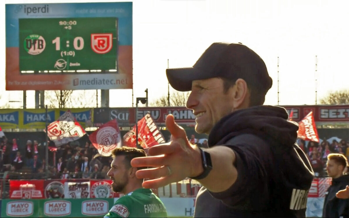 Die Bank näher an der Bande, der Schulterschluss mit den Fans habe sehr gutgetan: „Das verpufft natürlich, wenn du hier 3:0 verlierst, da brauchen wir auch nicht drüber reden, aber so ist es ein kleiner Baustein, der eben dazu führt, dass wir wieder enger zusammenrücken, als Team hier auftreten und es jedem Gegner, der hier an der Lohmühle spielt, das Leben schwer zu machen. Ich glaube, wenn man mich an der Seitenlinie rauf und runter turnen sieht, sieht man, dass es Spaß macht und dass ich das sehr genieße. Gottseidank, wir sind wieder dabei, ob es reicht, werden wir sehen.“