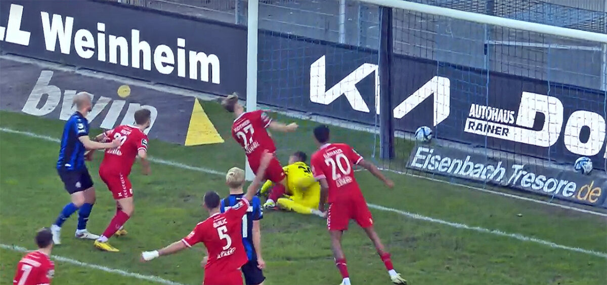 Die Dramaturgie der zweiten Halbzeit kann man sich aus Waldhofer Perspektive nicht besser ausdenken: SV-Coach Marco Antwerpen wechselt mit Malte Karbstein, Kevin Goden, Samuel Abifade und mit Verzögerung Martin Kobylanski gleich zu Beginn das entscheidende Drehmoment ein – mitunter zwei der vorher von Joe Enochs als besonders gefährliche Neuzugänge erkannte Allzweckwaffen. Und als hätte Antwerpen in seiner PK in KGB-Manier mit der angeblichen Kopfballschwäche seiner Jungs Verwirrung stiften wollen, netzen Goden (47.) – nach Flanke von Abifade, der zuvor Faber nass macht – und Karbstein nach einer Ecke (57.) zum 2:1-Dreh ein.