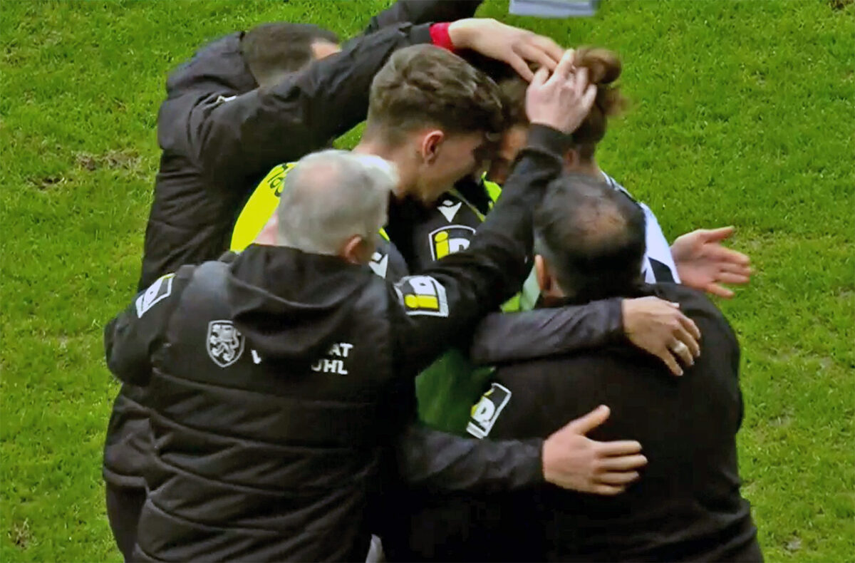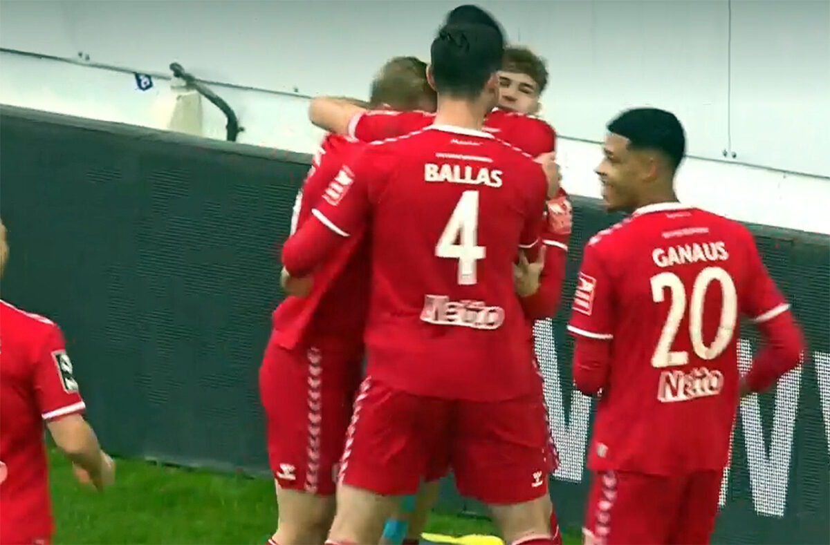 Anschließend wehrt sich der Jahn redlich, hat auch einige gute Gelegenheiten, sich das Duell noch einmal zurechtzulegen. Kother legt rechts raus zu Konrad Faber, der nur einen Gegenspieler in der Nähe sieht – aber anstatt einen Schritt weiter in die Mitte zu machen, drischt er aus spitzem Winkel drauf. Nikolai Rehnen pariert mit beiden Fäusten zur Ecke (64.). Dann schaltet sich Louis Breunig in die Offensive ein, lässt einen Schwarzweißen stehen, flankt auf den Fünfer, wo Elias Huth Richtung Kugel fliegt und knapp daneben köpft (65.).