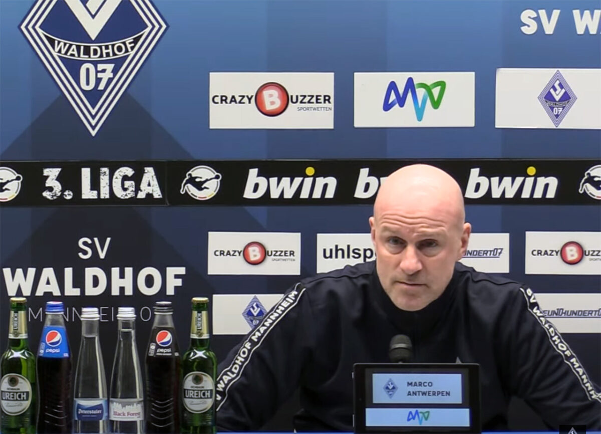 SV-Waldhof-Trainer Marco Antwerpen: „Das ist aktuell, wenn man sich die Tabelle anschaut, die beste Mannschaft, deshalb sind sie Tabellenführer. Vielleicht aktuell auch mit einigen Problemen, wenn man dann sieht, dass man 6:3 verliert. Deshalb haben sie jetzt wieder ihre Defensive stabilisiert im letzten Heimspiel. Definitiv natürlich ein schwieriges Spiel.“ Bei vier Punkten Rückstand auf das rettende Ufer müsse man natürlich anfangen zu punkten.